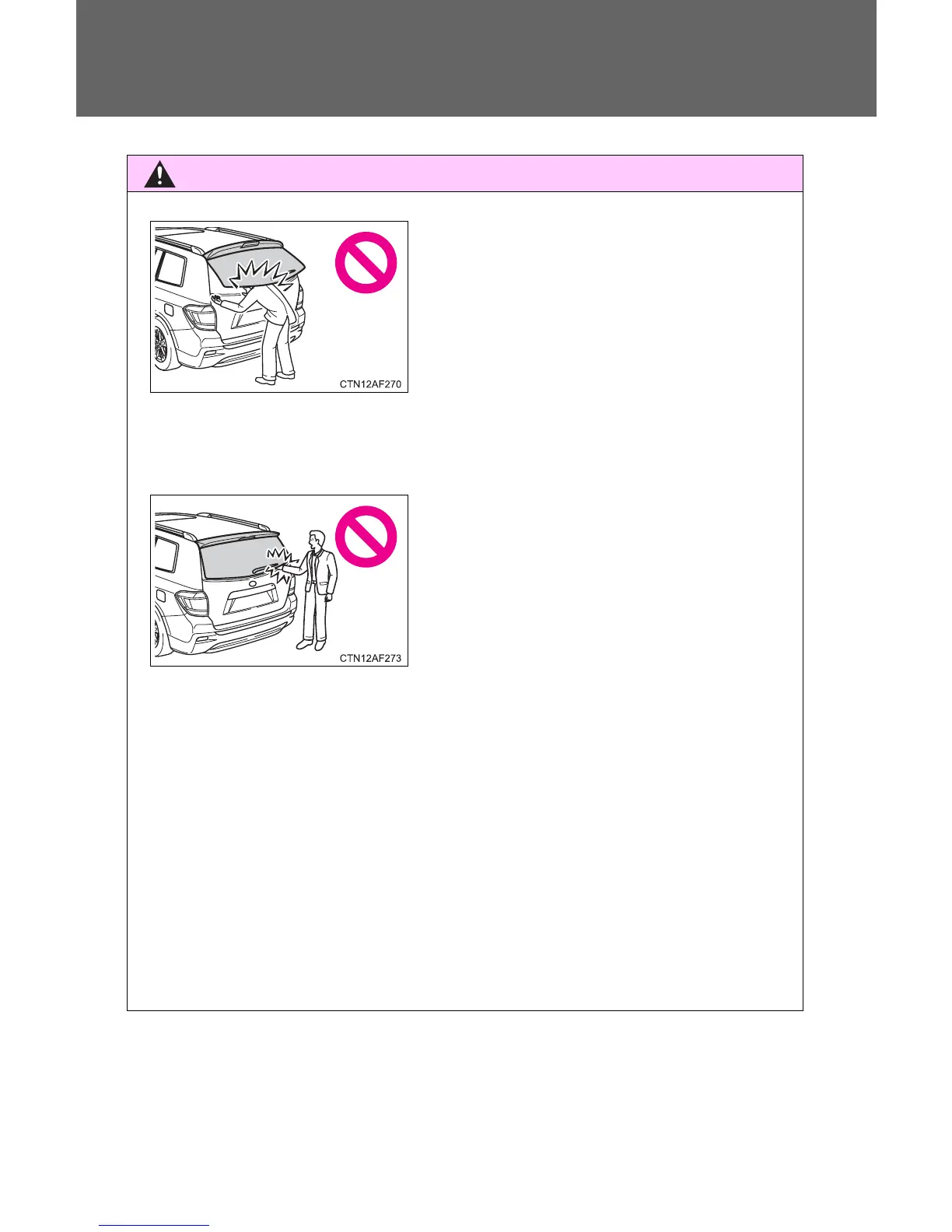 Doing so may cause hands to be caught or the glass hatch damper stay to