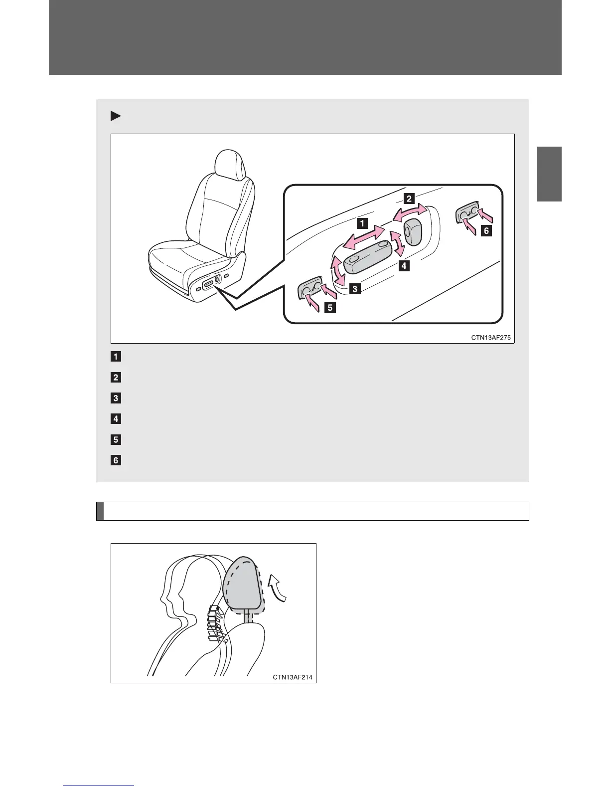 1-3. Adjustable components (seats, mirrors, steering wheel)