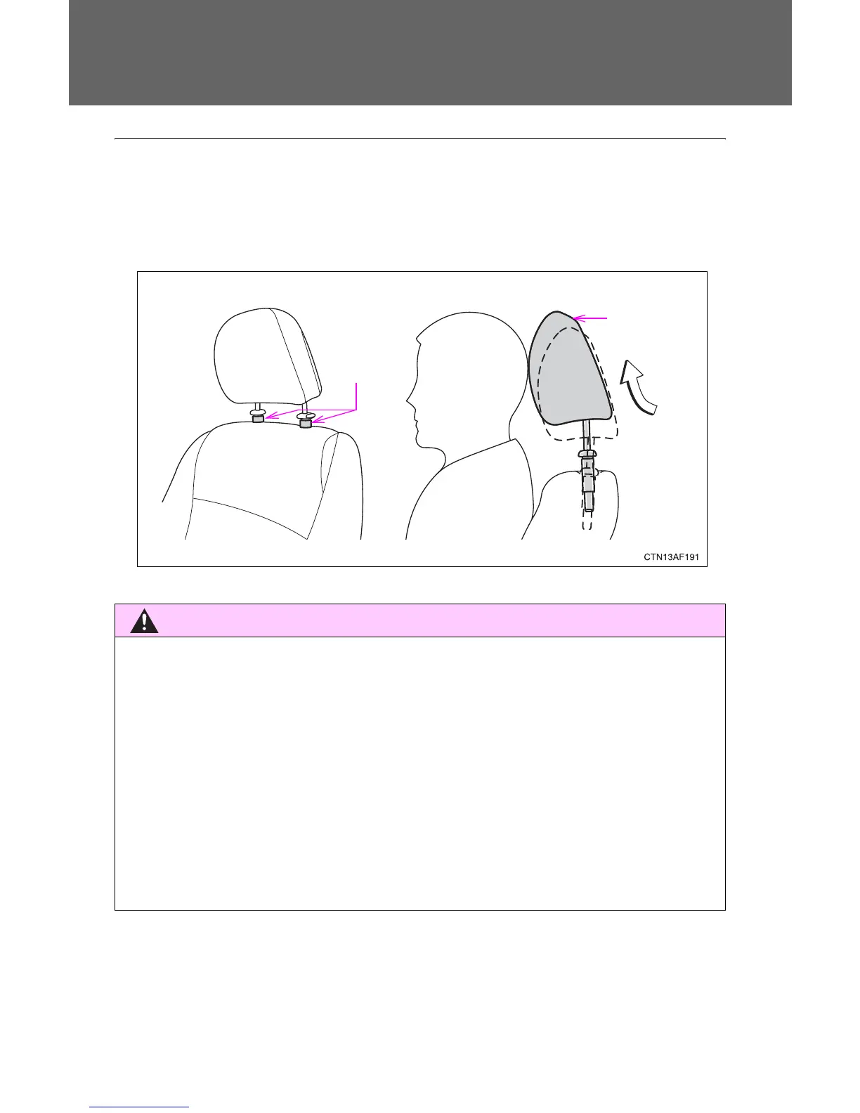 move. Pushing up a locked head restraint forcibly may cause the inner struc-
