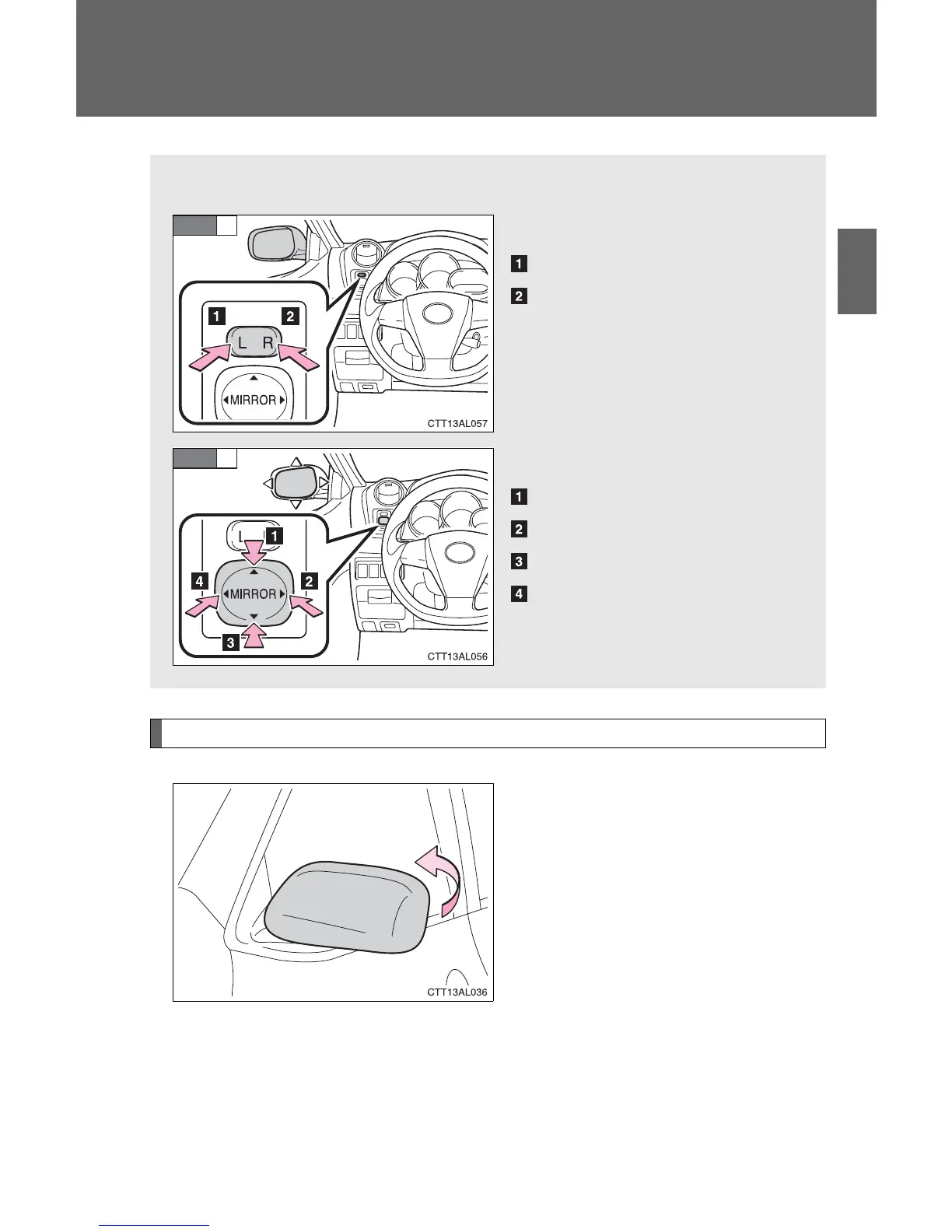 1-3. Adjustable components (seats, mirrors, steering wheel)