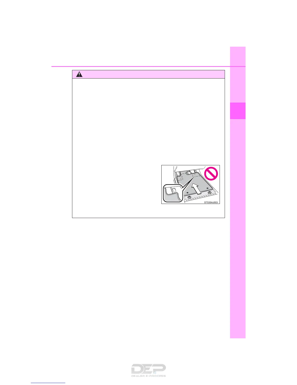 Failure to do so may cause the driver’s floor mat to slip, possibly interfering