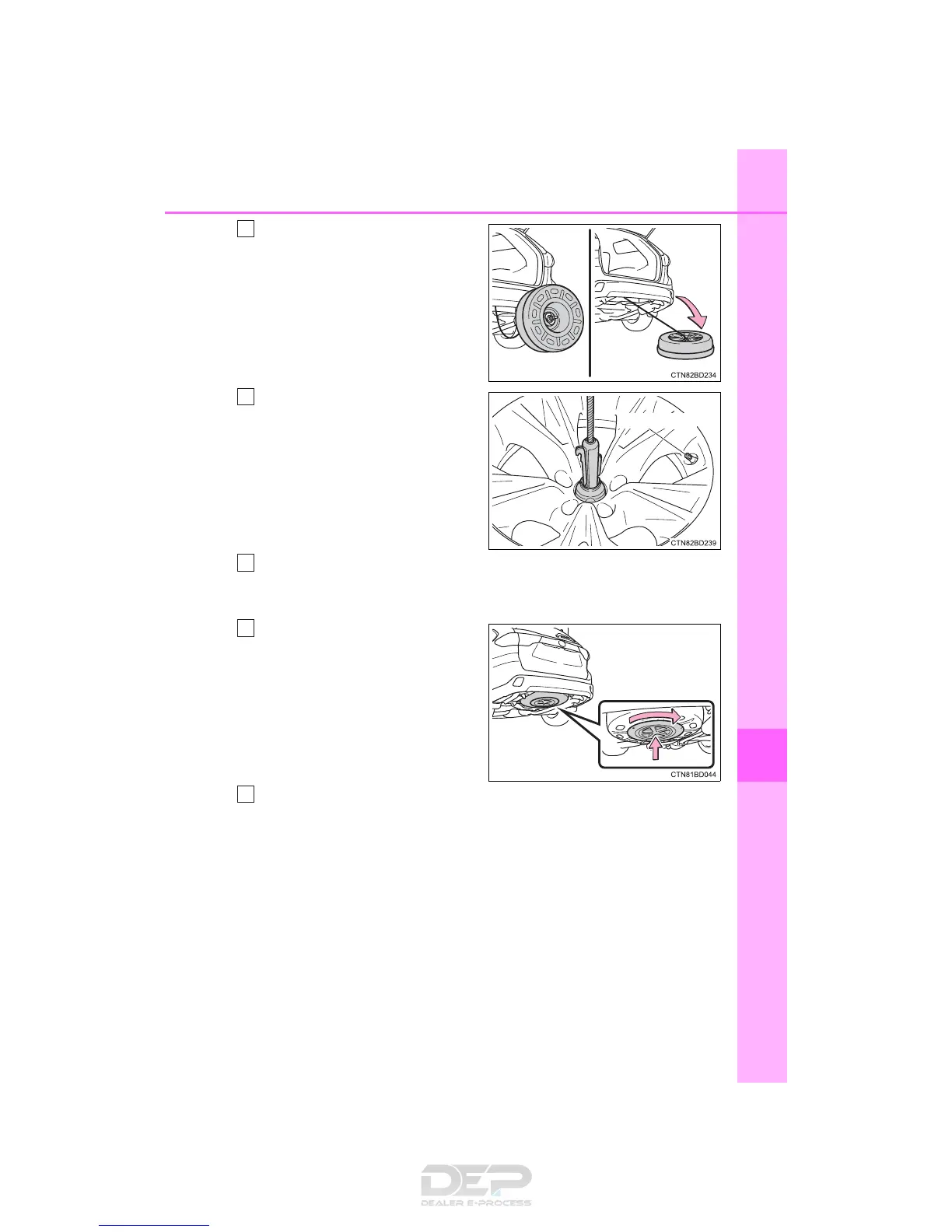 Using the jack handle and adapter socket, tighten the spare tire