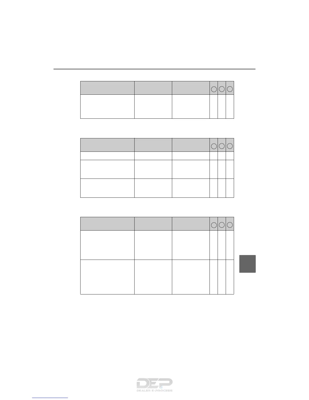 Driver’s door All doors — — O