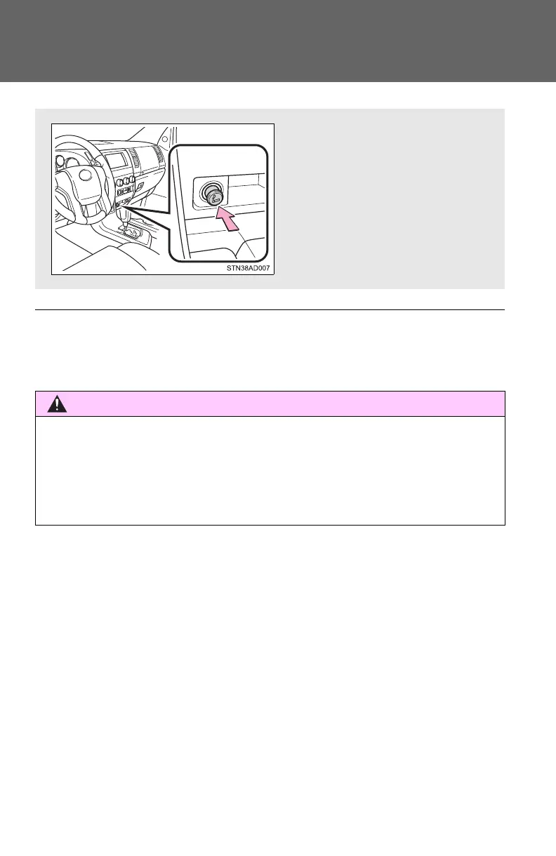 ● Do not hold the cigarette lighter down. It could overheat and cause a fire.