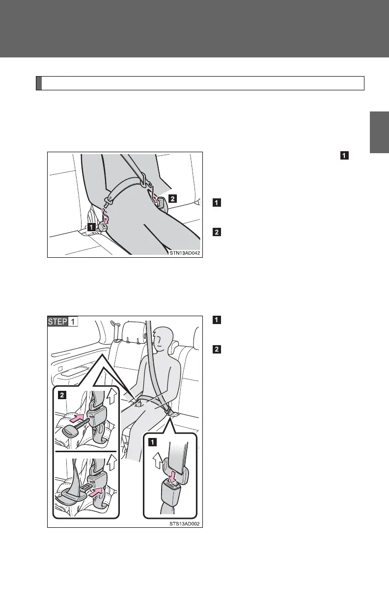 The third center seat belt is a 3-point type restraint with 2 buckles. Both