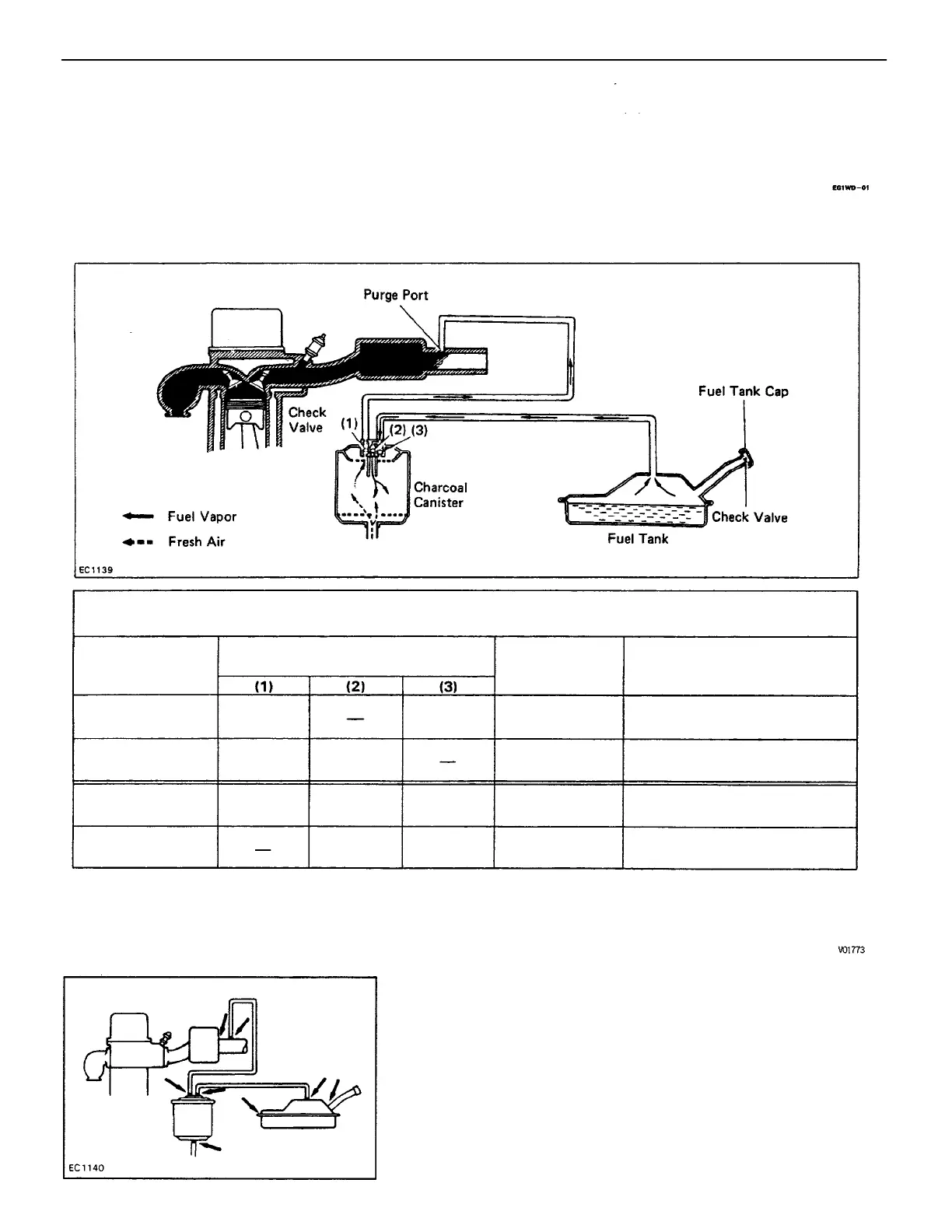To reduce HC emission, evaporated fuel from the fuel tank is routed through the charcoal canister to the throttle body