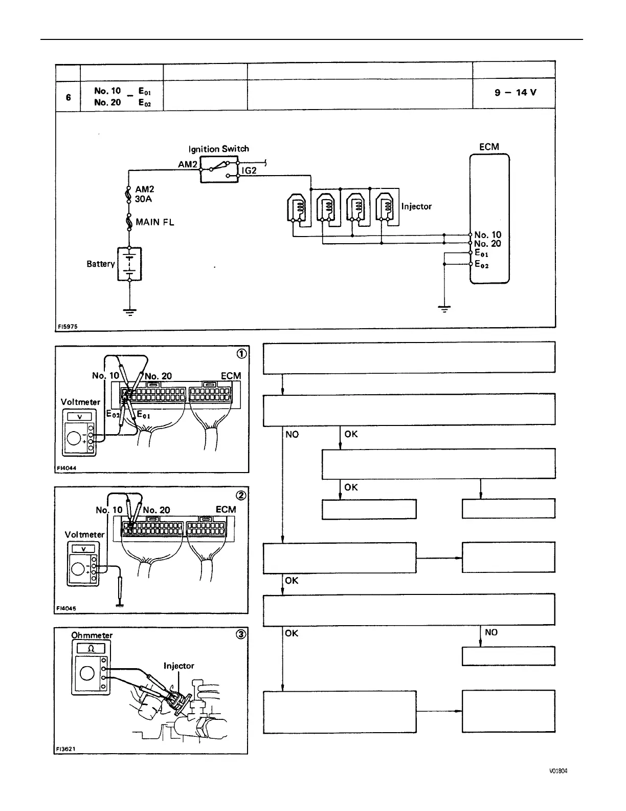 (1)There is no voltage between ECM terminals No. 10 and/or