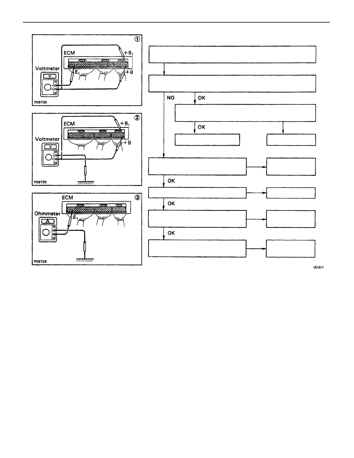 (2) Check that there is voltage between ECM terminal + B (+ B1)