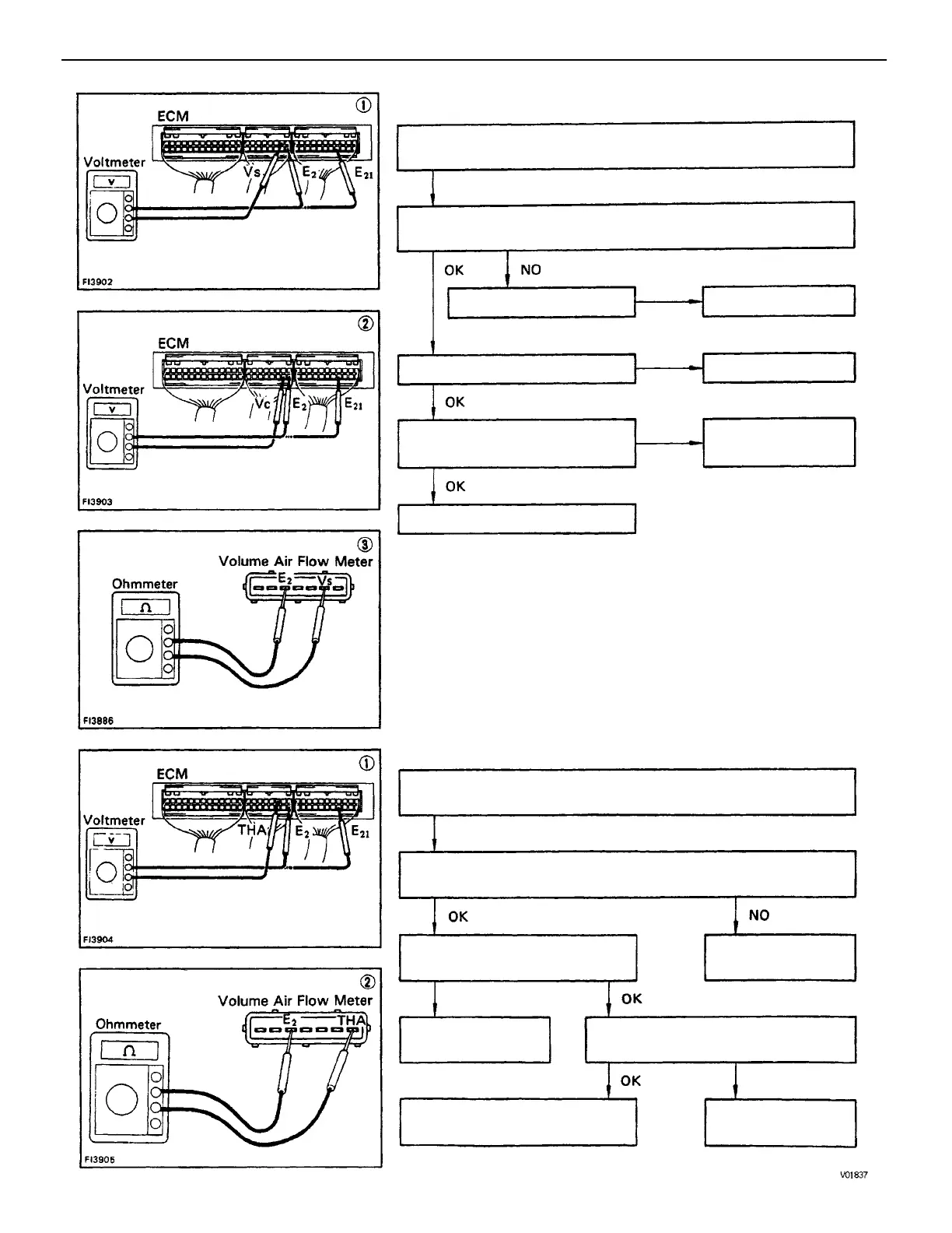 (2) Check that there is voltage between ECM terminals Vc and E2