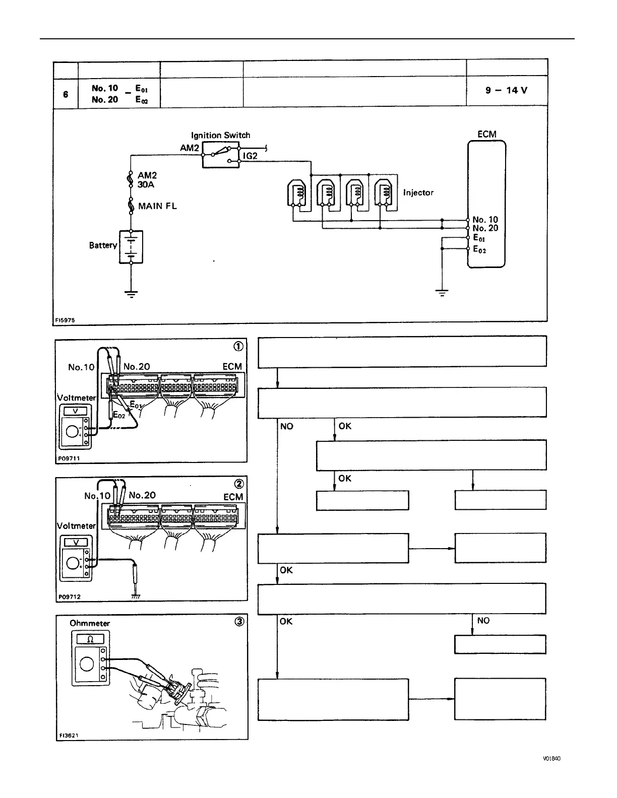(1) There is no voltage between ECM terminals No. 10 and/or