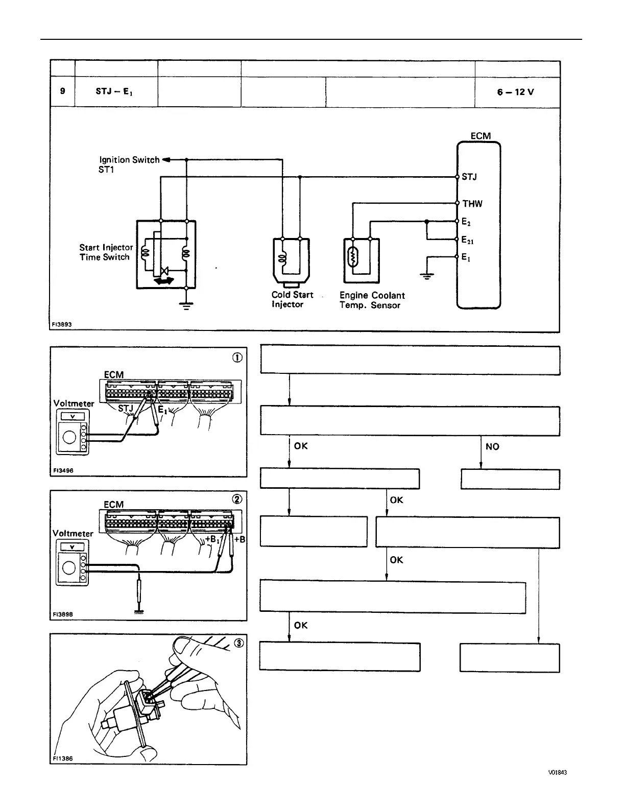 (1) There is no voltage between ECM terminals STJ and E1.
