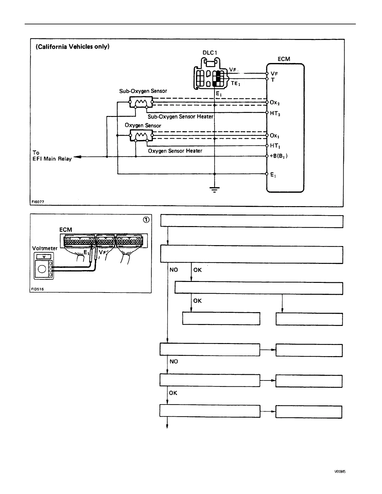 (1) There is no voltage between ECM terminals VF and E1.