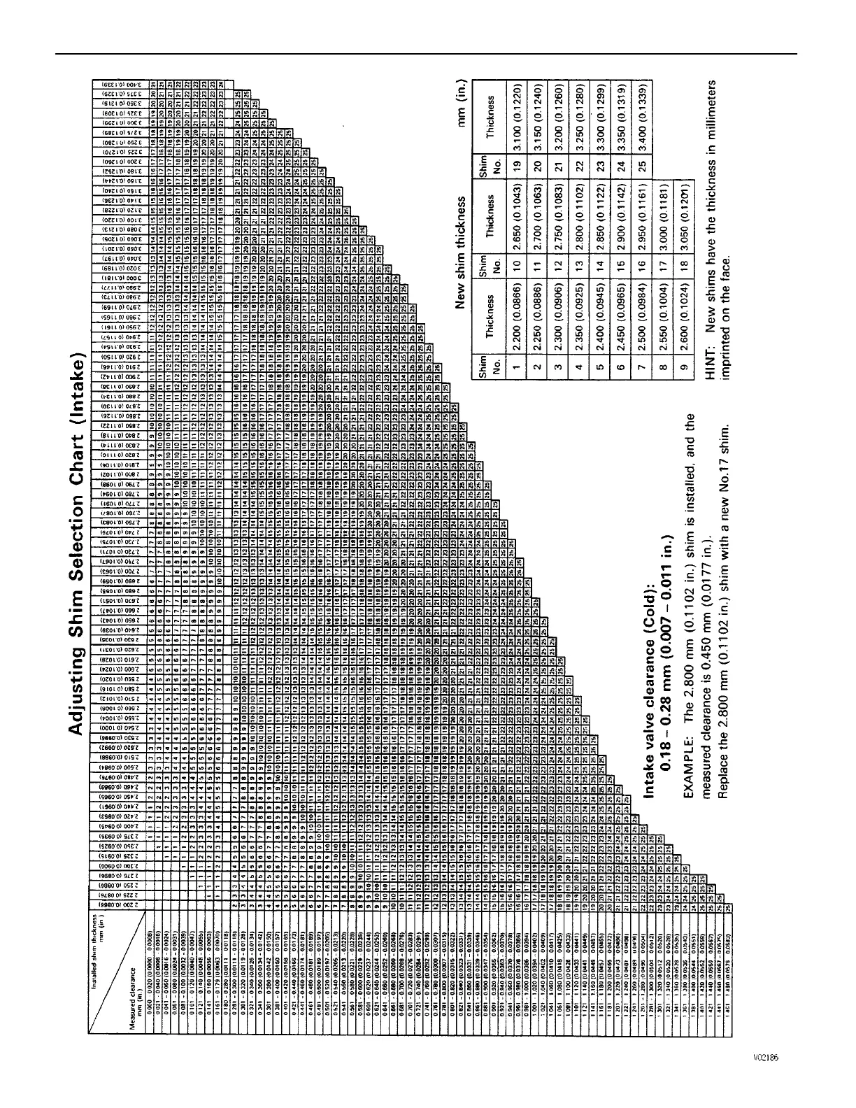 Toyota 22R-E - Adjusting Shim Selection Chart (Intake); New Shim Thickness; Intake Valve Clearance (Cold)