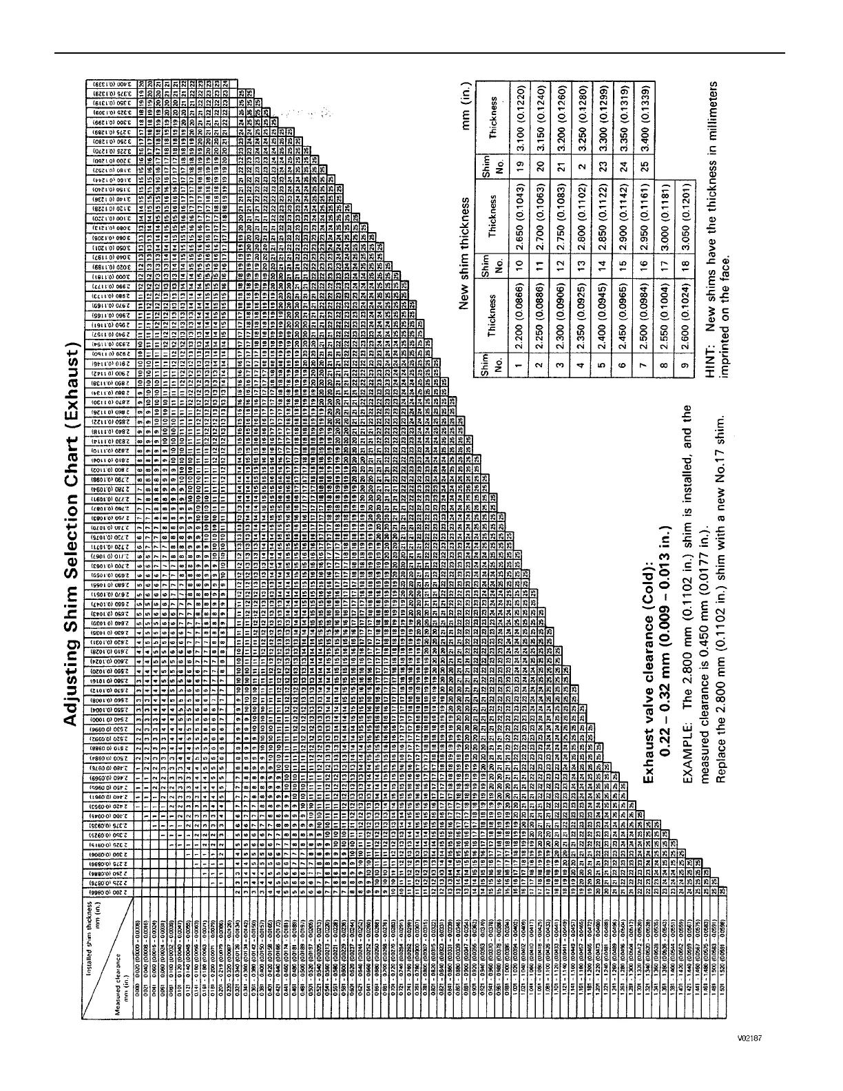 Toyota 22R-E - Adjusting Shim Selection Chart (Exhaust)