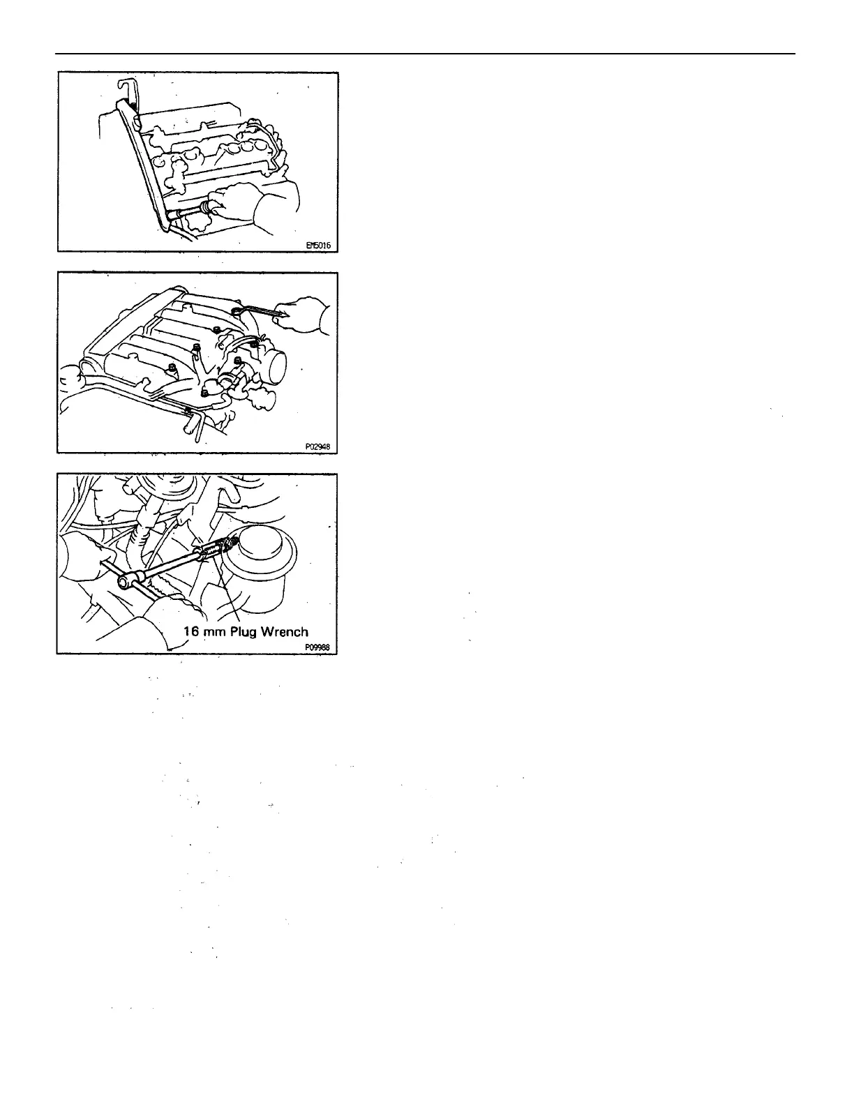 Using a 16 mm plug wrench, install the six spark
