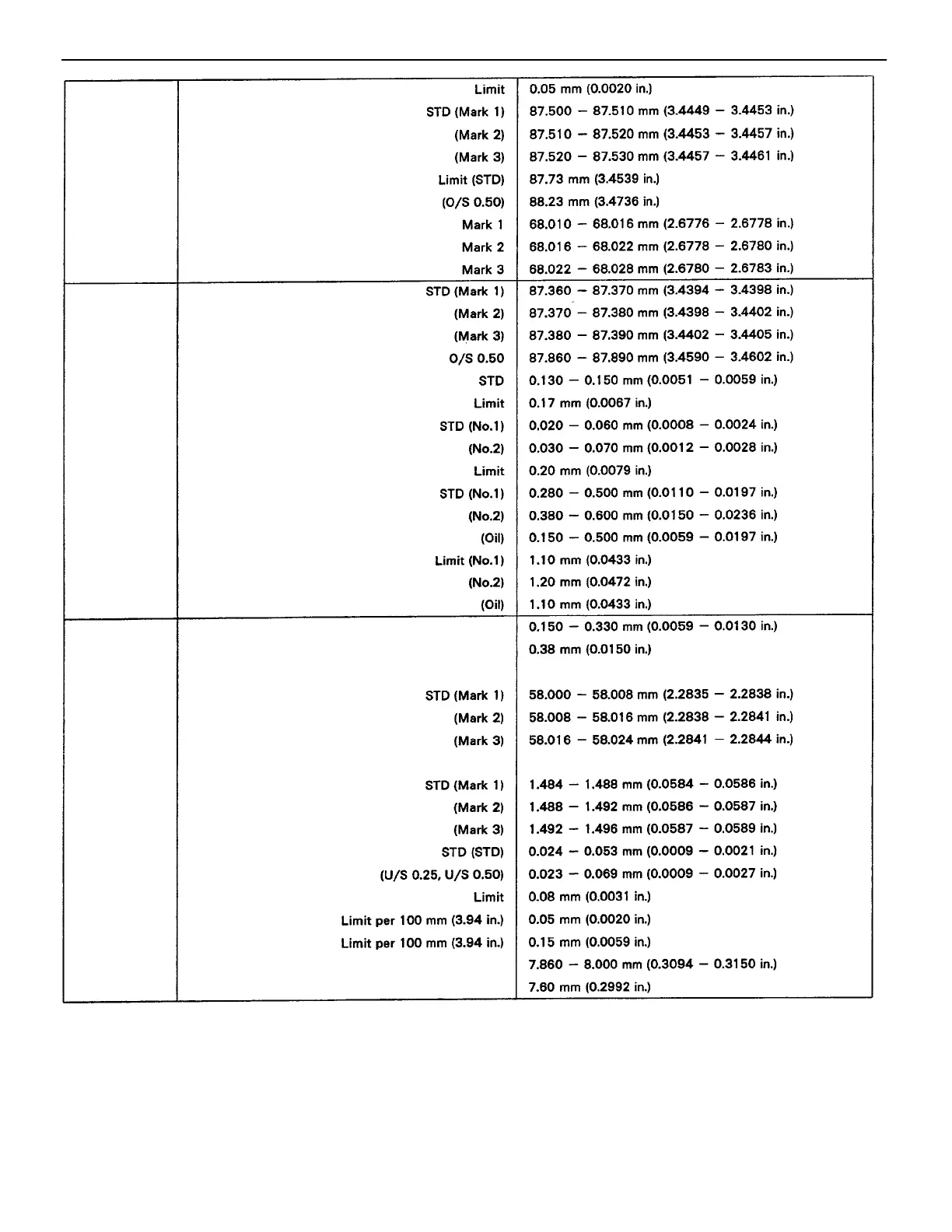 Thrust clearance STD