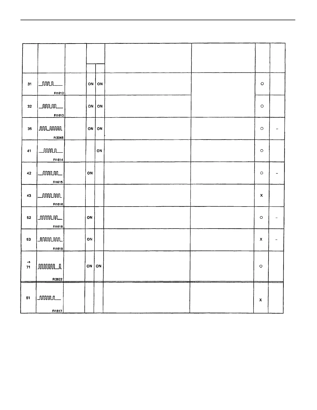 *1: ”ON’ displayed in the diagnosis mode column indicates that the malfunction indicator lamp is lighted up when a malfunction is detected. ”OFF”