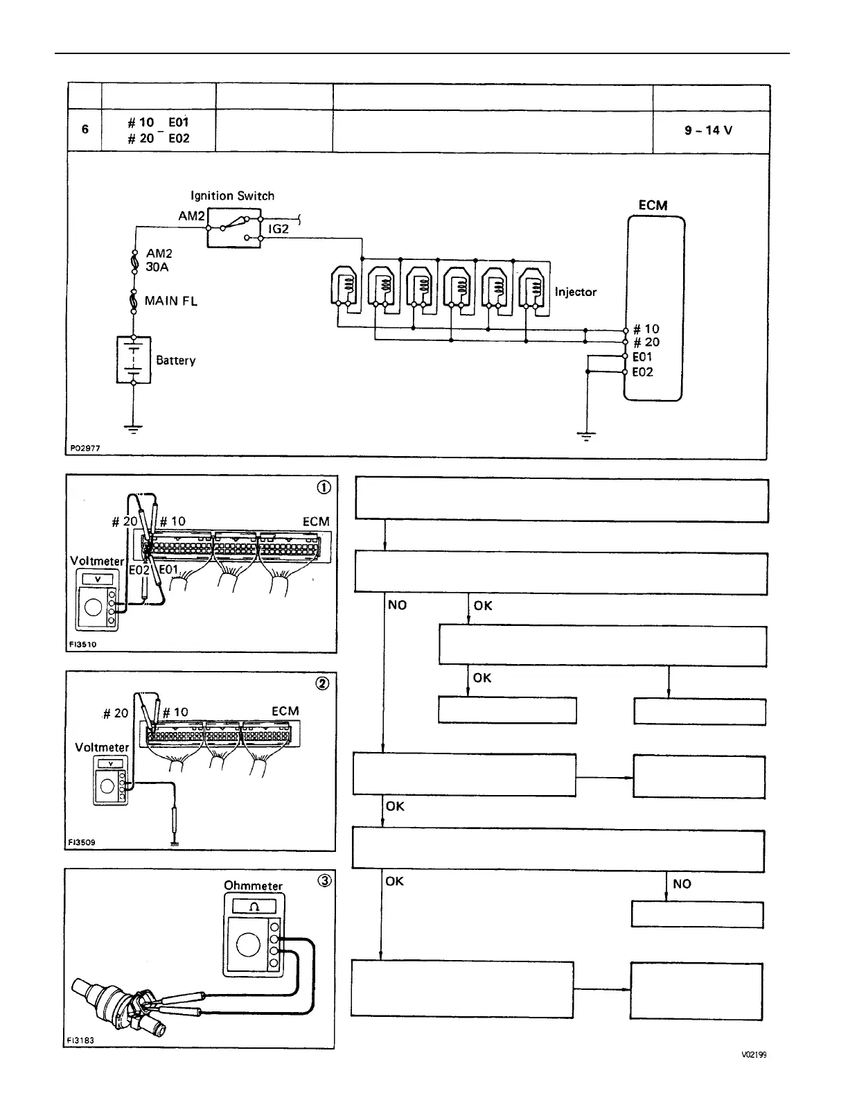 (2) Check that there is voltage between ECM terminal # 10 and/or