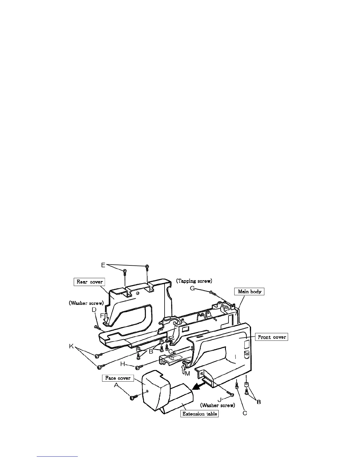 (5)Remove a pair of screws (K).(Thread guide plate set screw)