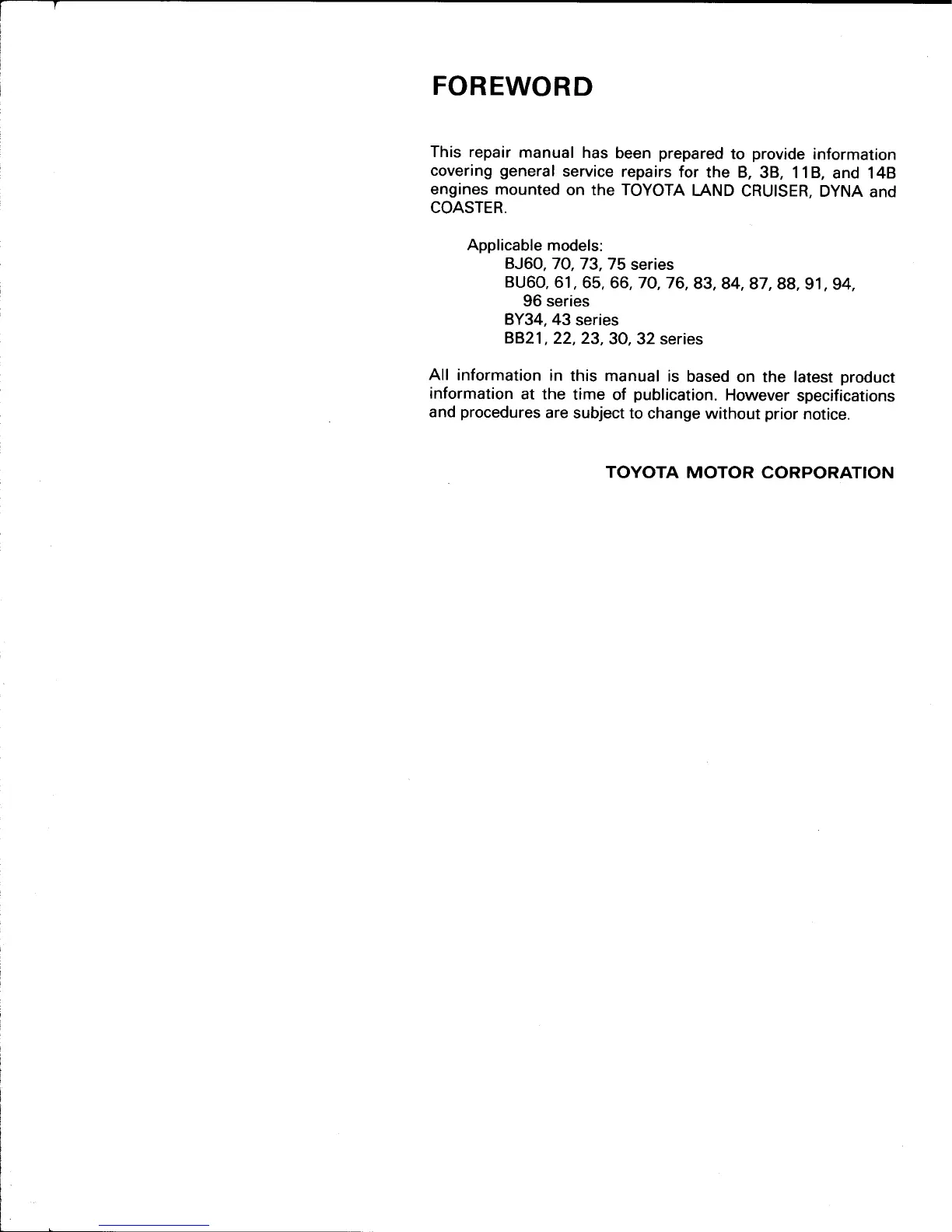 Toyota 3B - FOREWORD; Applicable models
