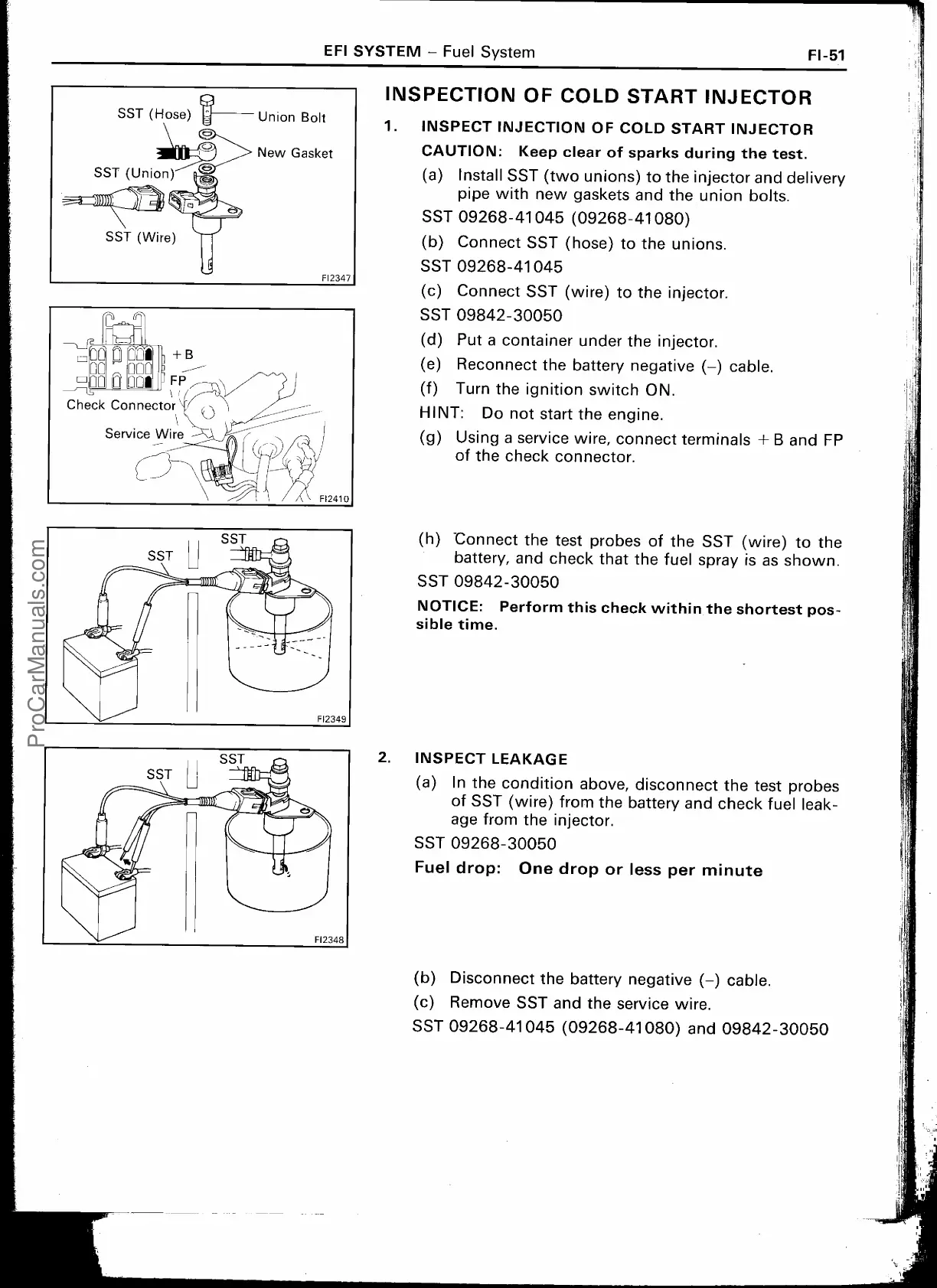 of SST (wire) from the battery and check fuel leak-