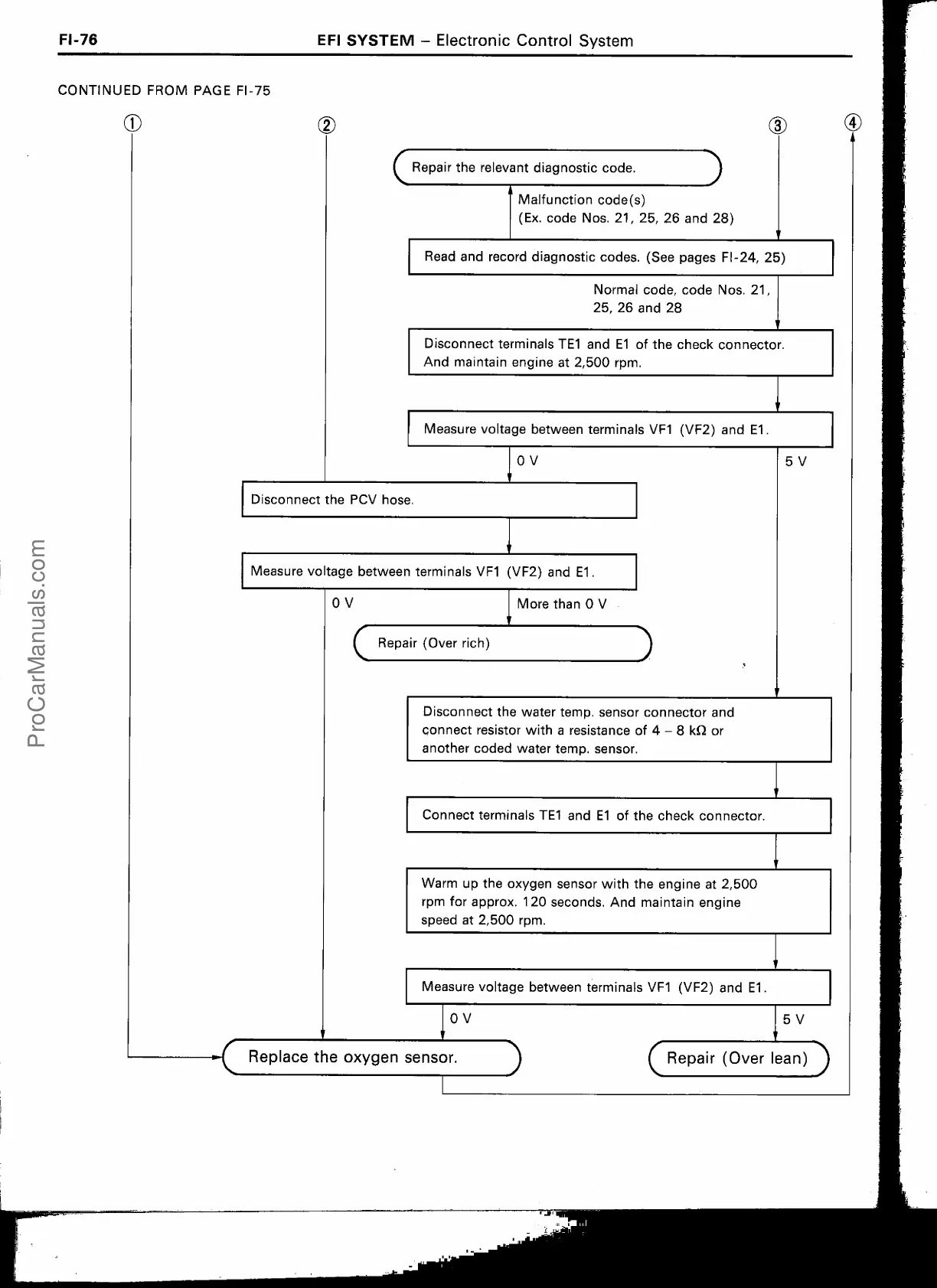 Read and record diagnostic codes. (See pages FI-24, 25)