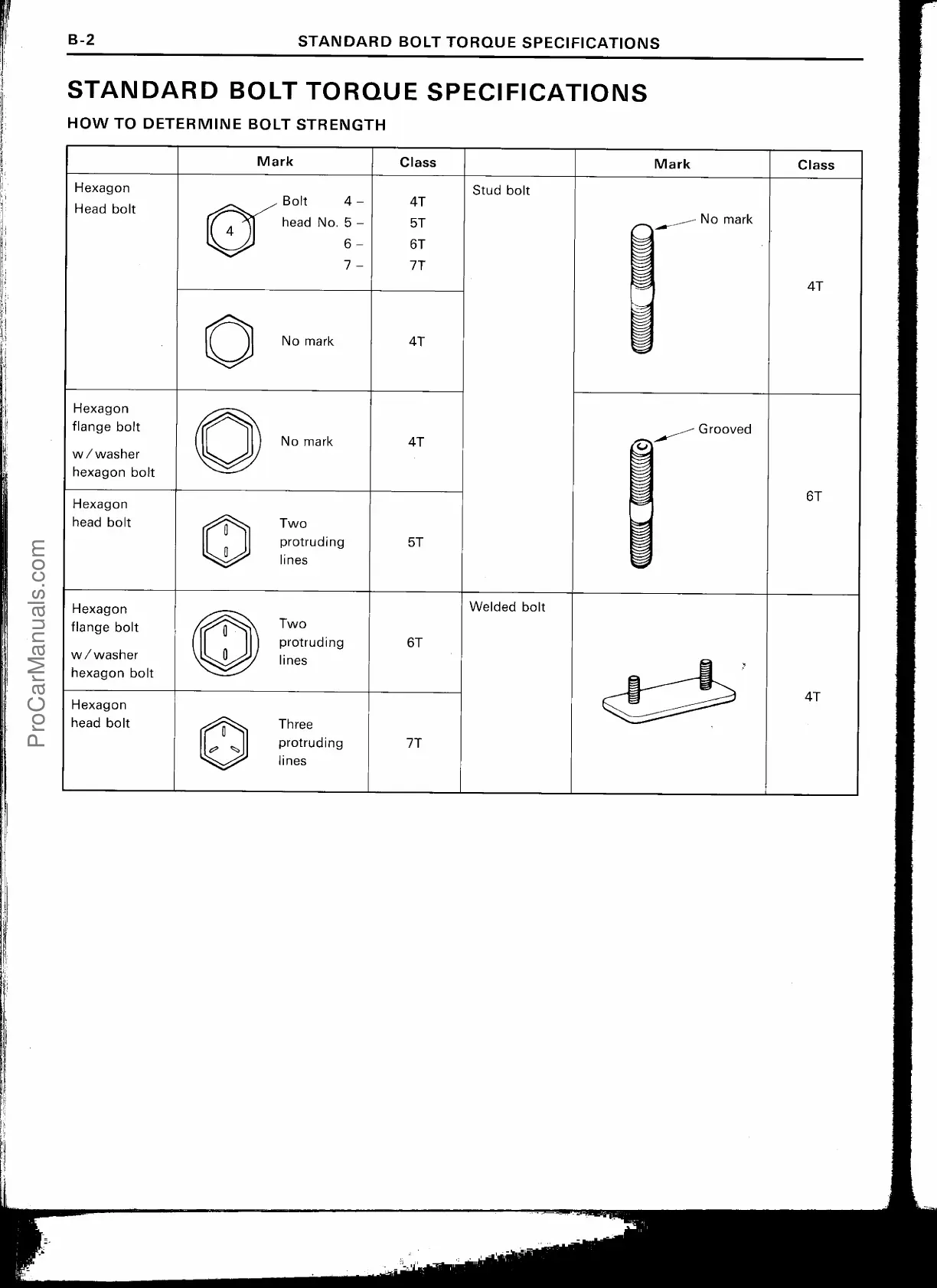 Toyota 3F-E - Standard Bolt Torque Specifications