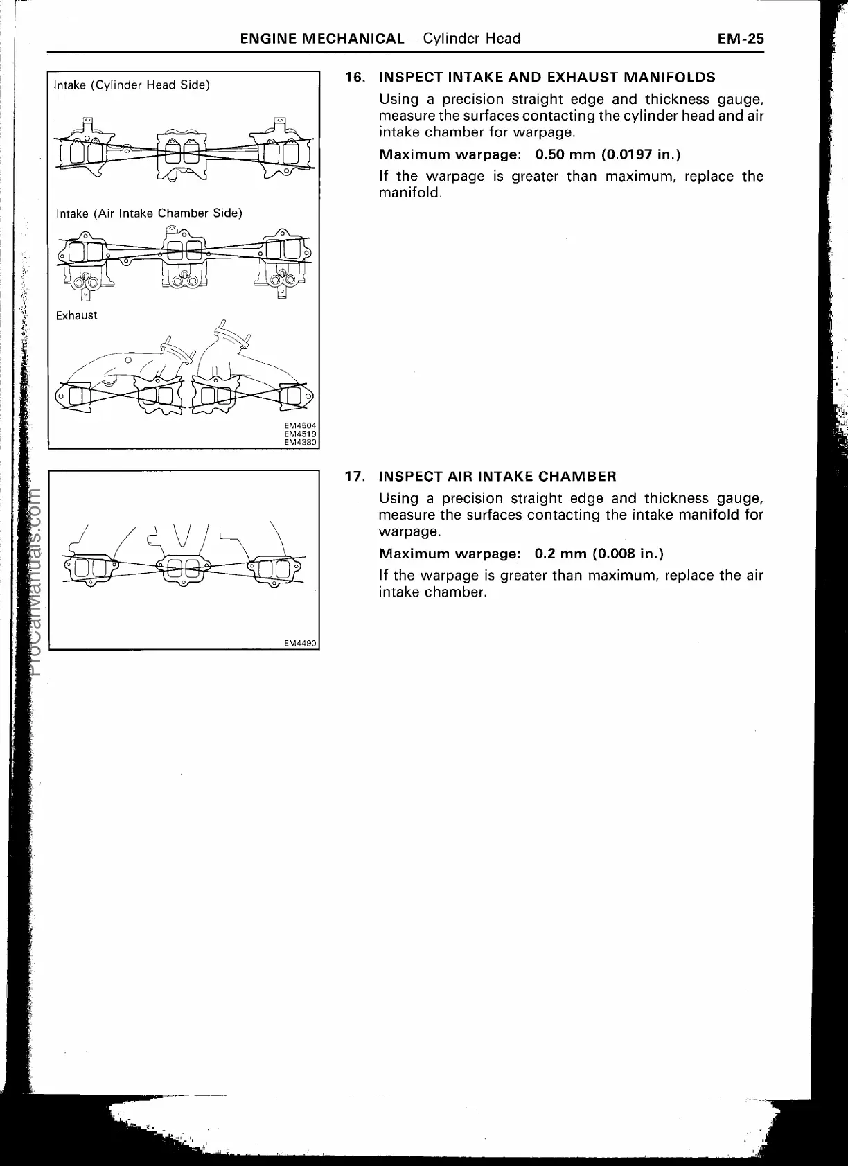 16. INSPECT INTAKE AND EXHAUST MANIFOLDS