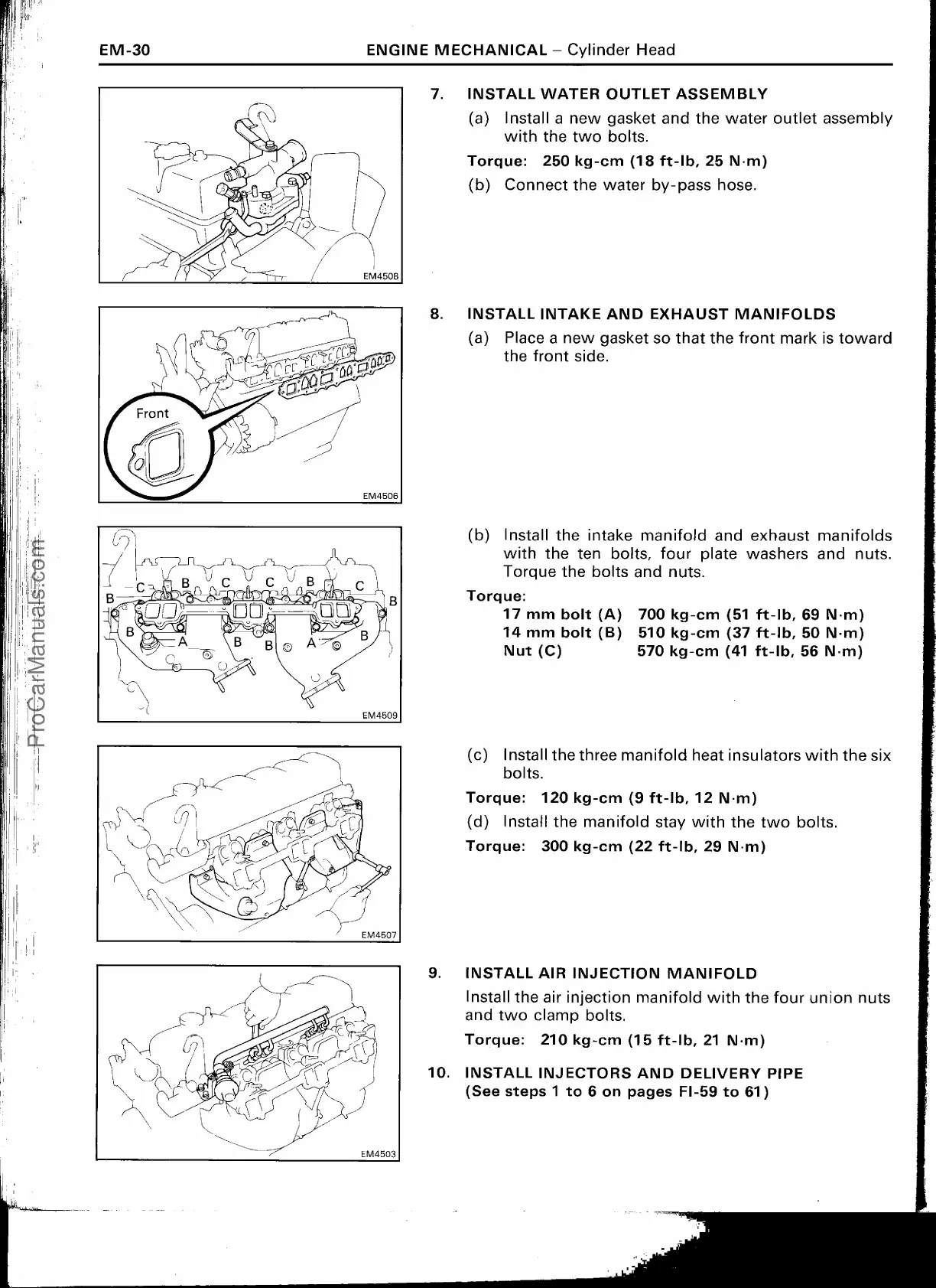 (b) Install the intake manifold and exhaust manifolds