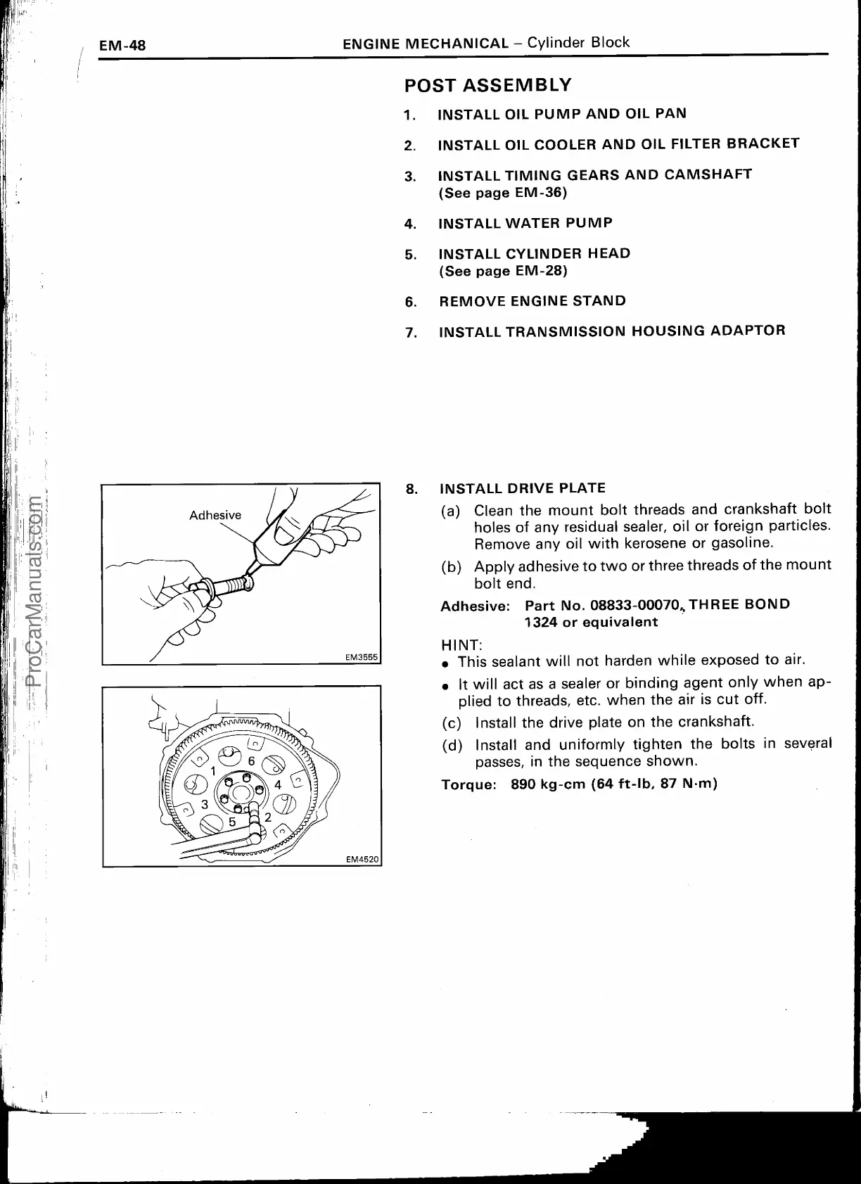 Torque: 890 kg-cm (64 ft-lb, 87 N•m)