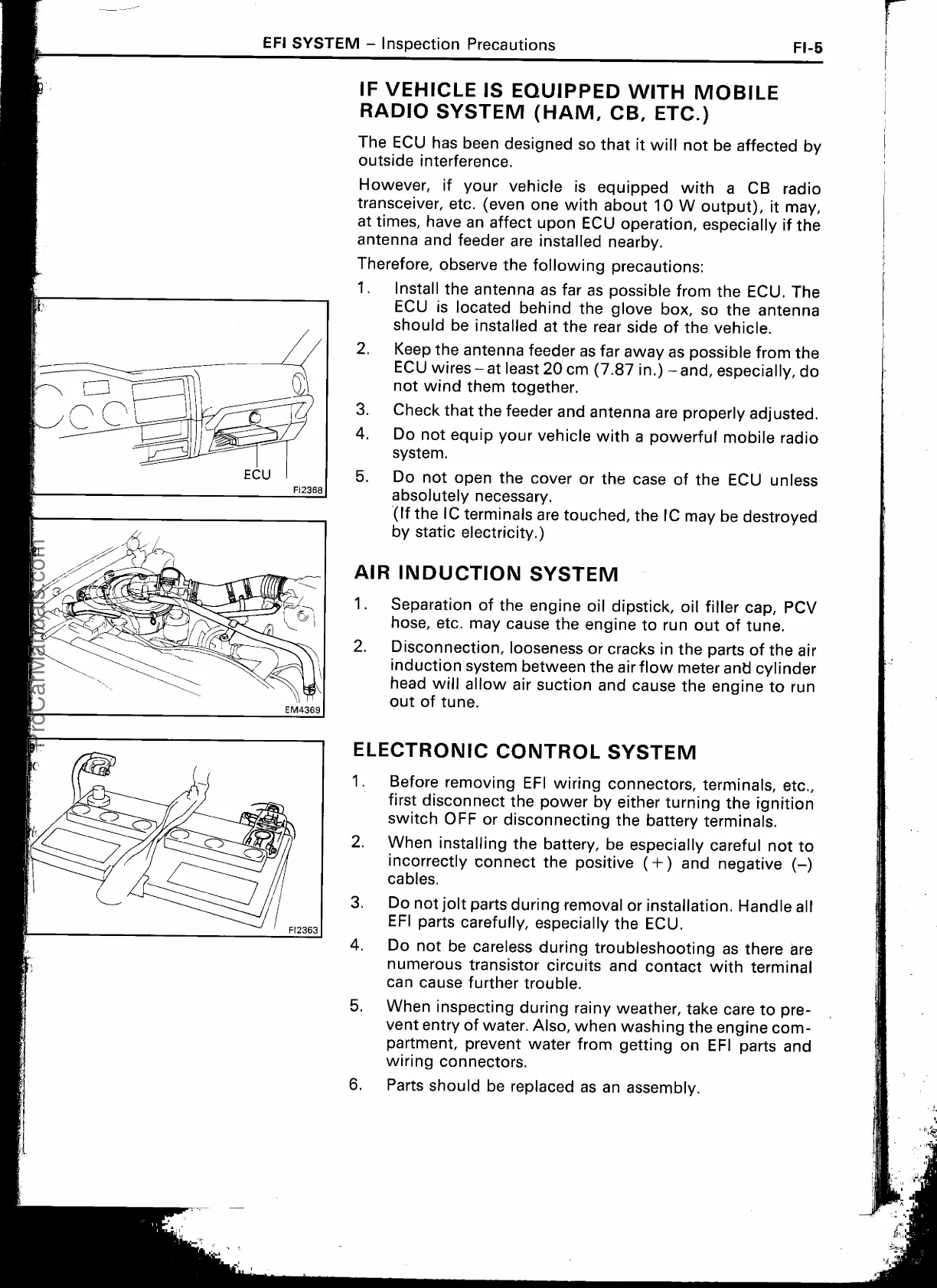 partment, prevent water from getting on EFI parts and
