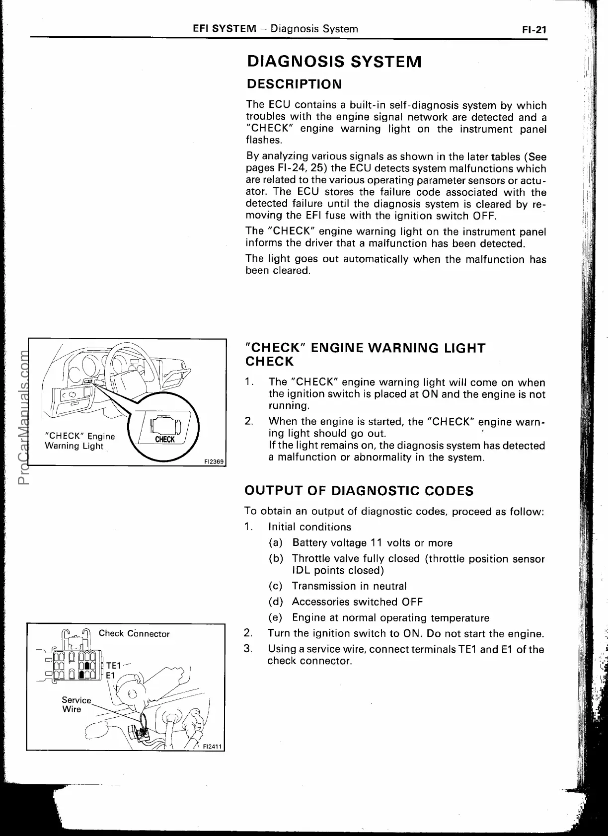 pages FI-24, 25) the ECU detects system malfunctions which