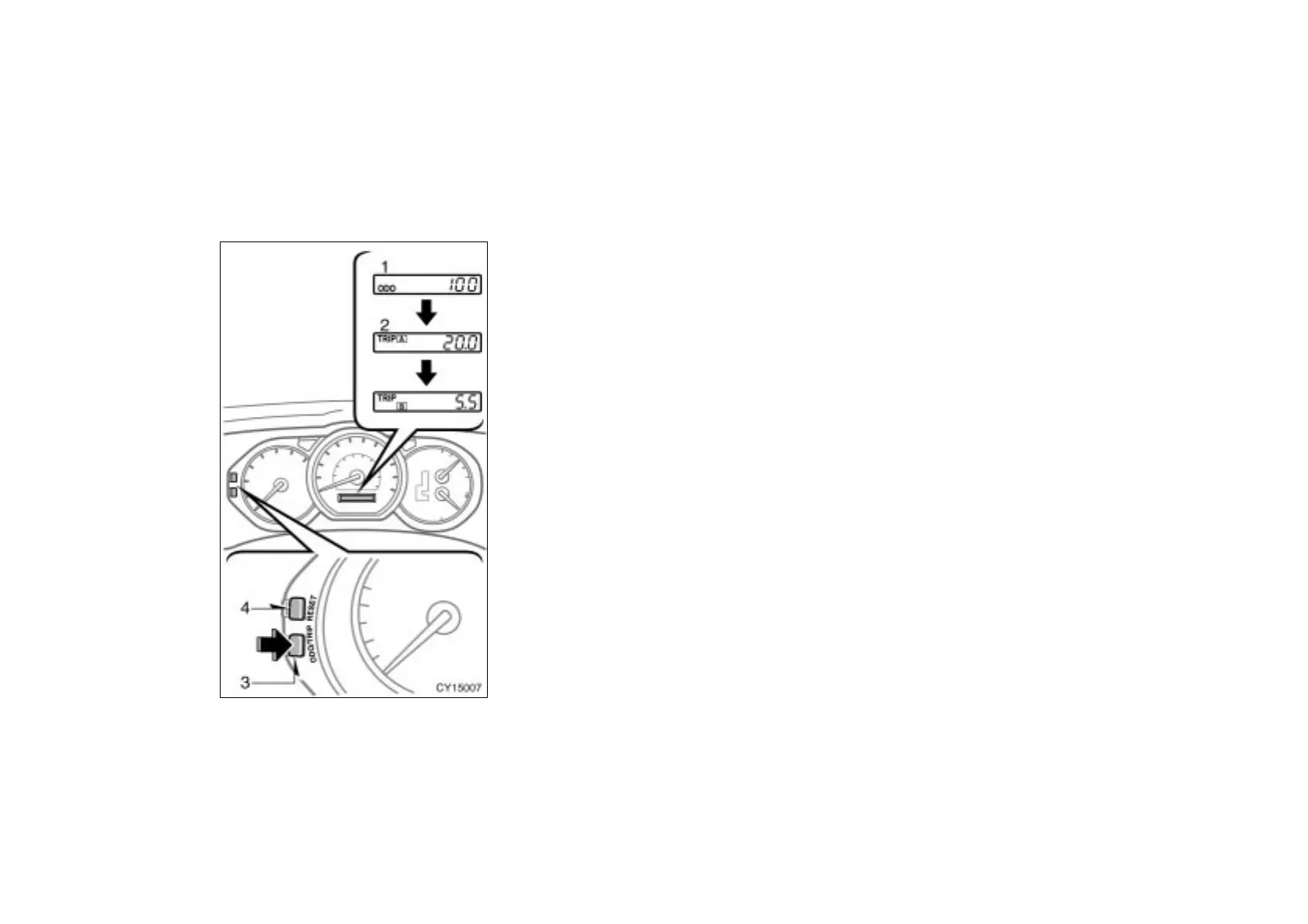 3. Odometer/two trip meter changeover