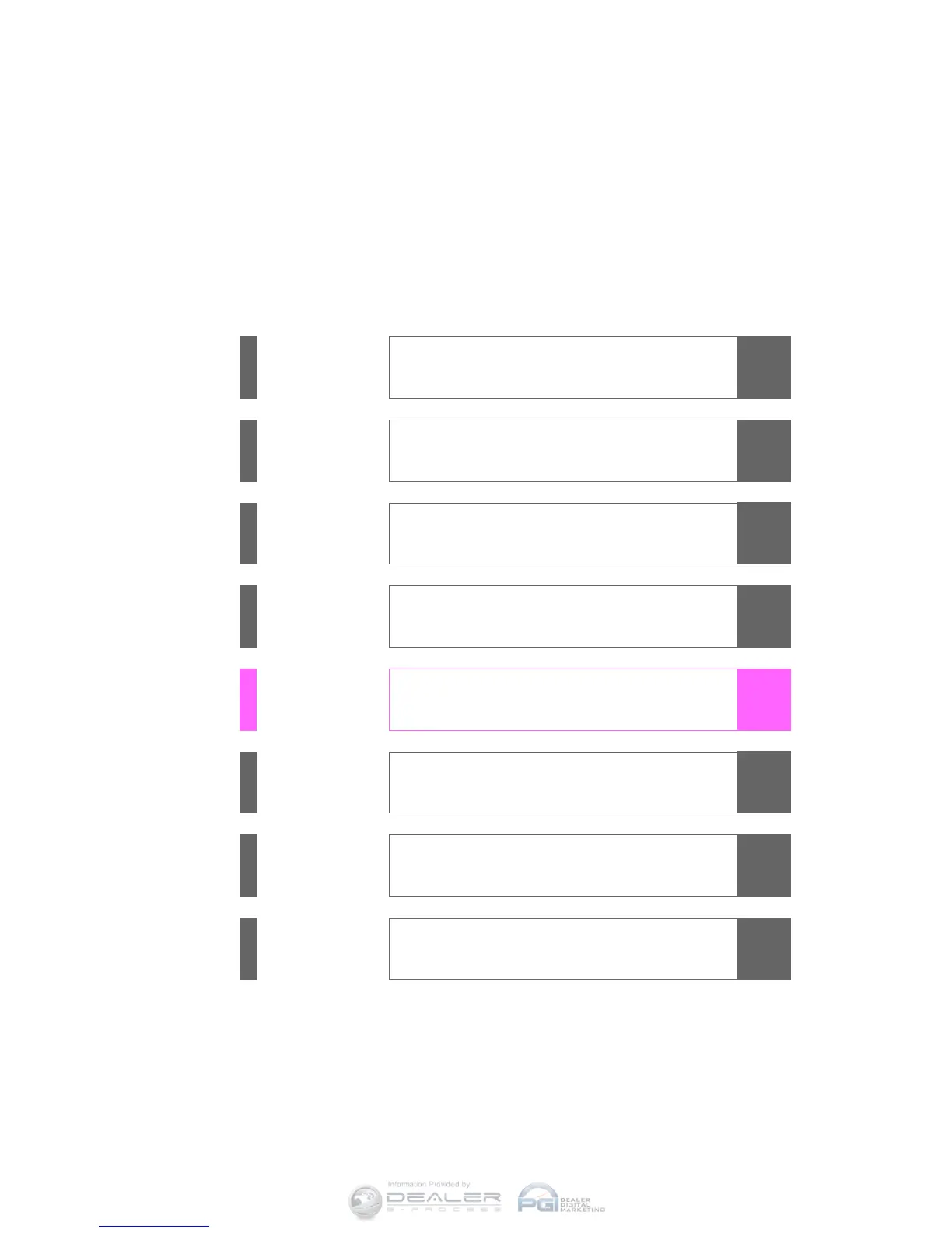 Alphabetical listing of information contained in this