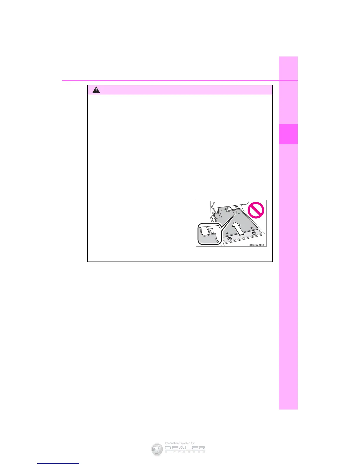 Failure to do so may cause the driver’s floor mat to slip, possibly interfering