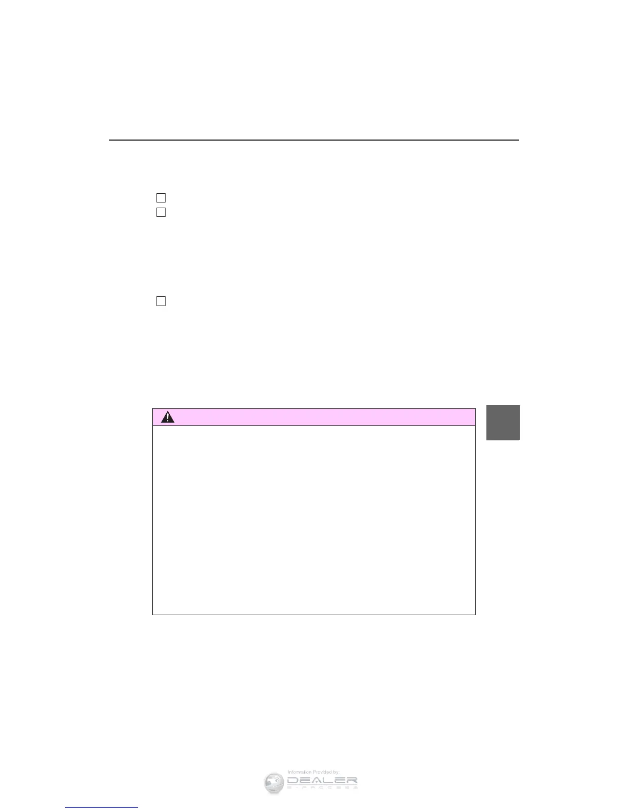 ■ Allow inspection and repairs to be performed by a Toyota dealer