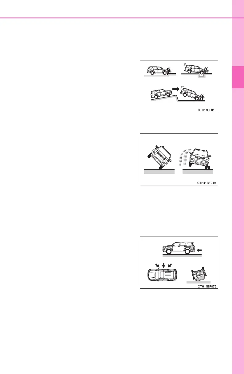 ■ Conditions under which the SRS airbags may deploy (inflate), other than