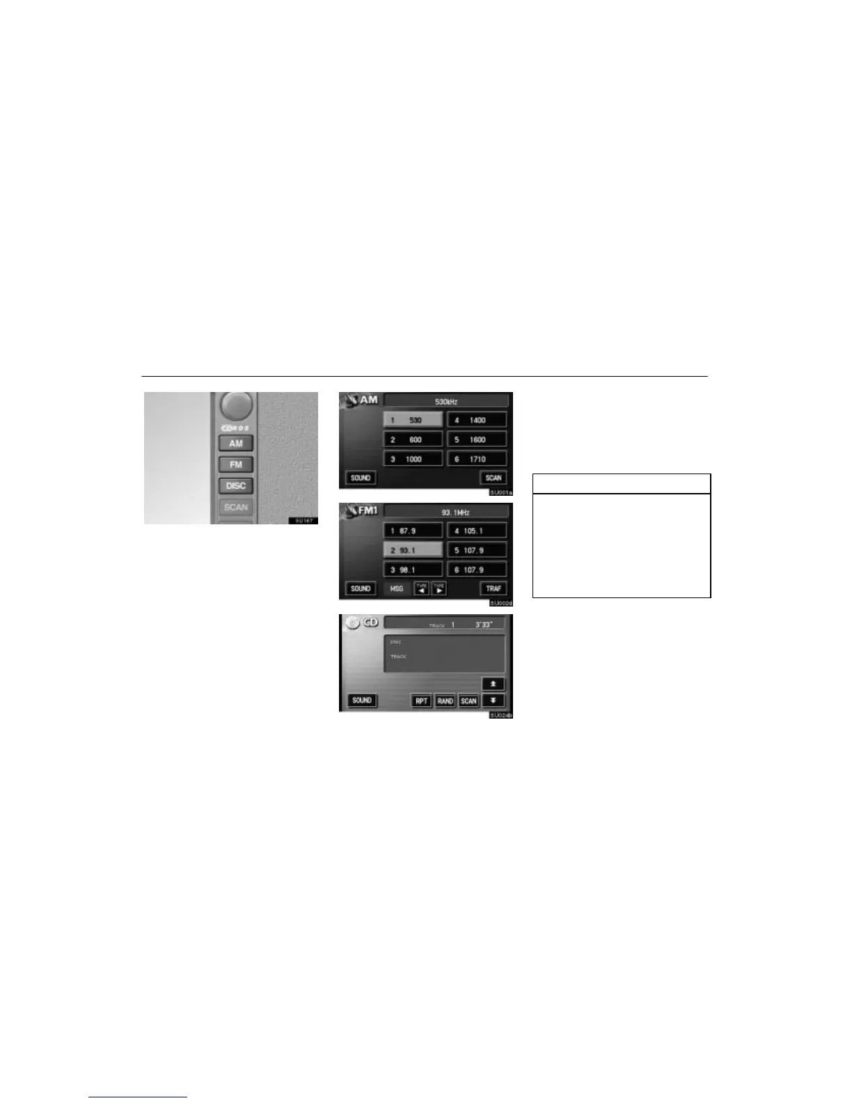 Push “AM”, “FM” or “DISC” button to turn