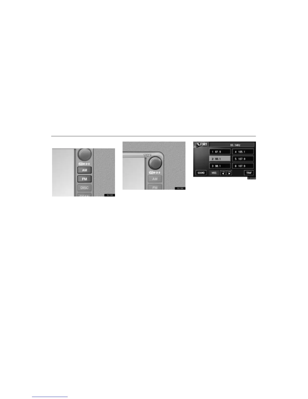 “AM”, “FM1” or “FM2” appears on the screen.
