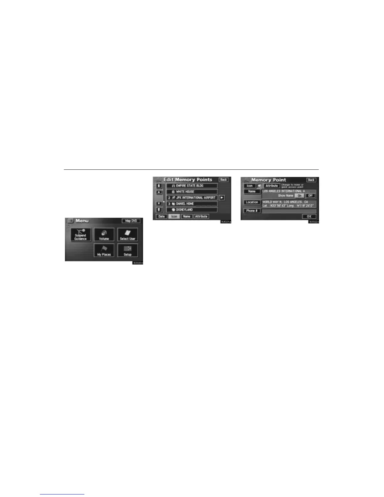 Touch the desired memory point switch to dis-
