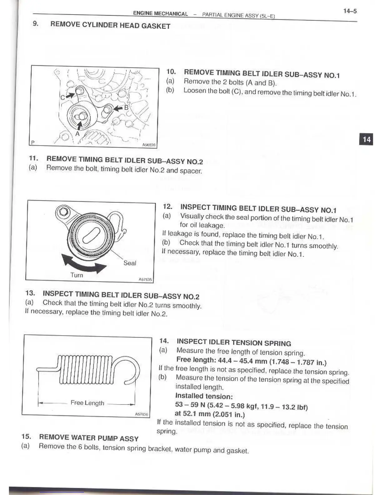 Toyota 5L-E - Remove Timing Belt Idler Sub-Assy No.1; Remove Timing Belt Idler Sub-Assy No.2; Inspect Timing Belt Idler Sub-Assy No.1; Inspection Timing Belt Idler Sub-Assy No.2