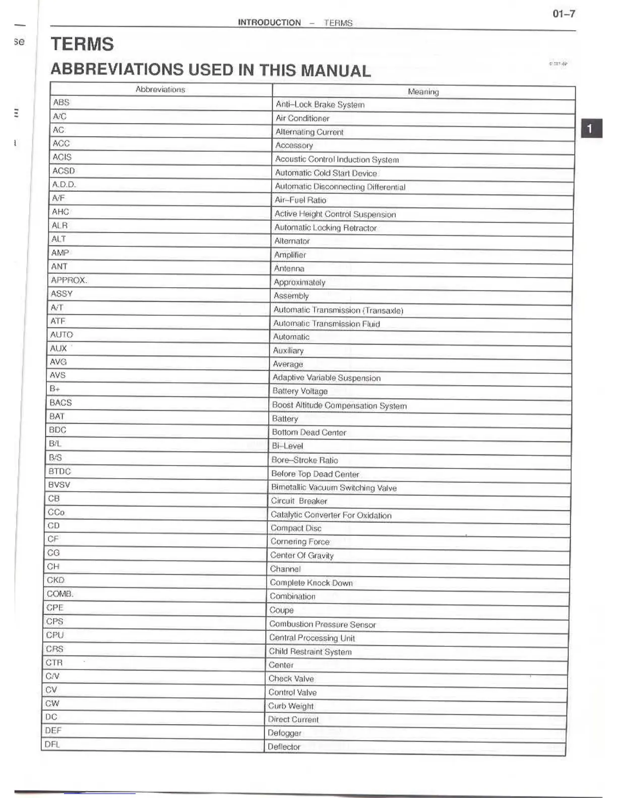 Toyota 5L-E - Introduction; Terms and Abbreviations