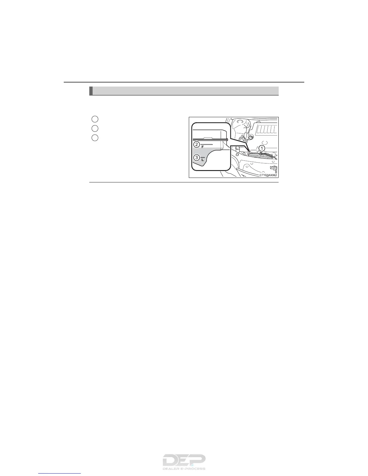 The coolant level is satisfactory if it is between the “F” and “L” lines on