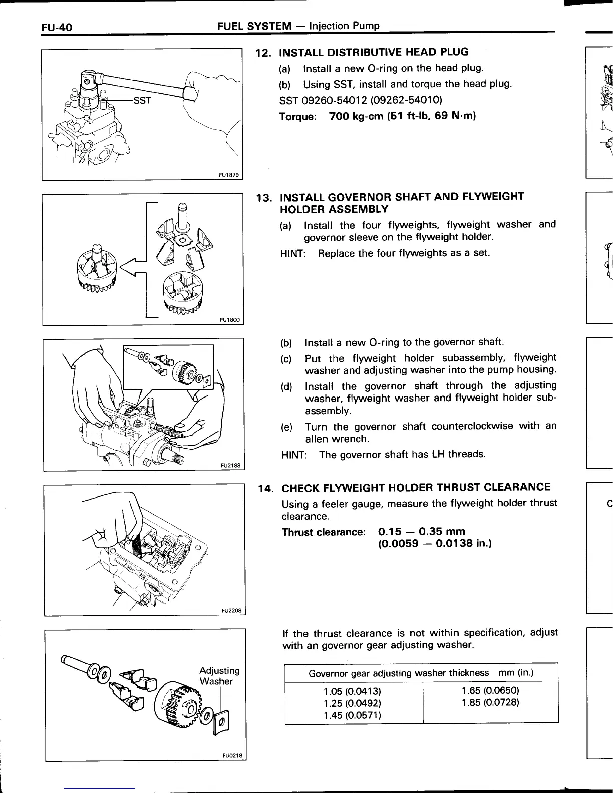 Toyota B - Check Flyweight Holder Thrust Clearance; Install Distributive Head Plug; Install Governor Shaft and Flyweight Holder Assembly