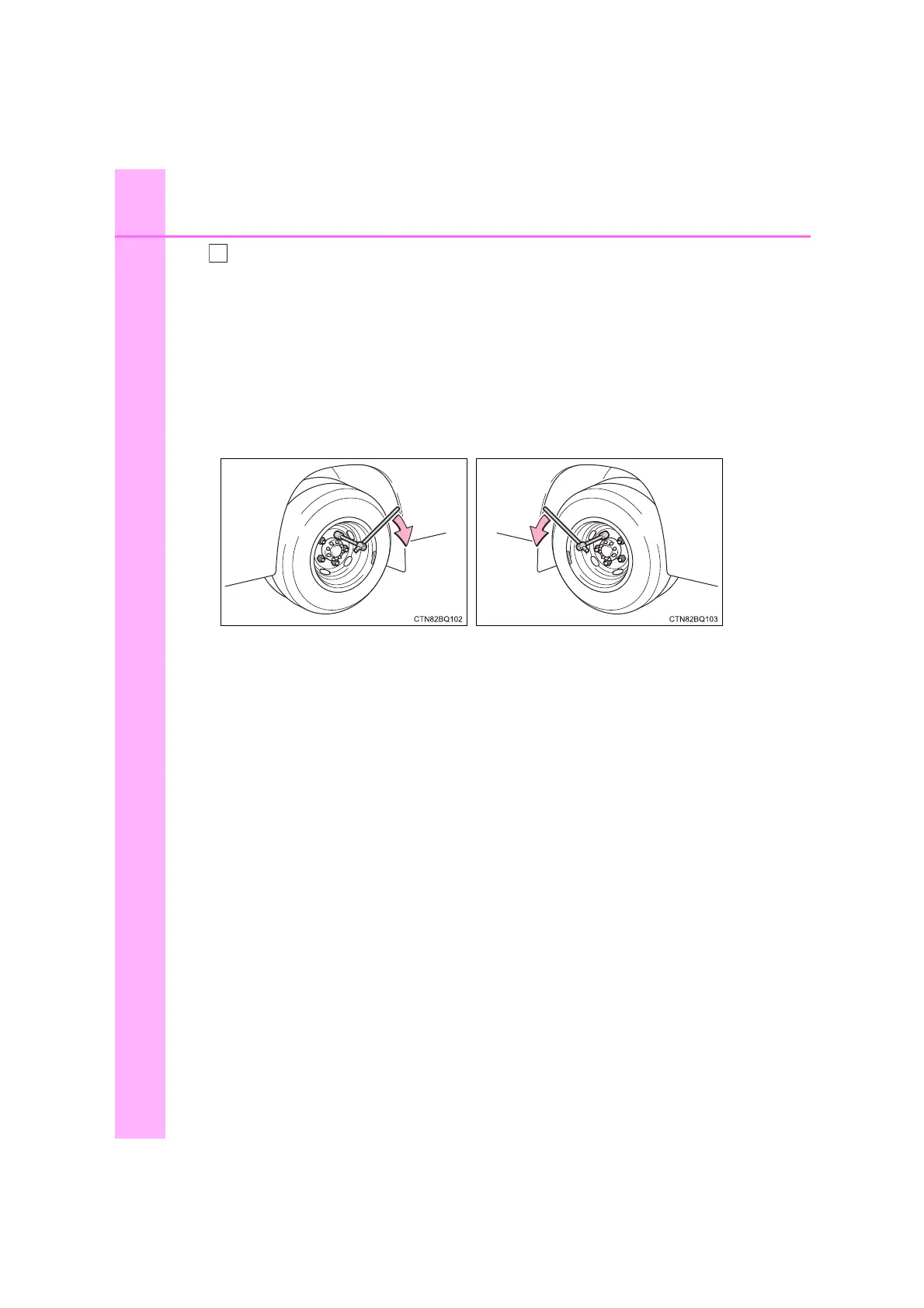 Loosen the wheel nuts for front tire or the wheel nuts and stop bolts