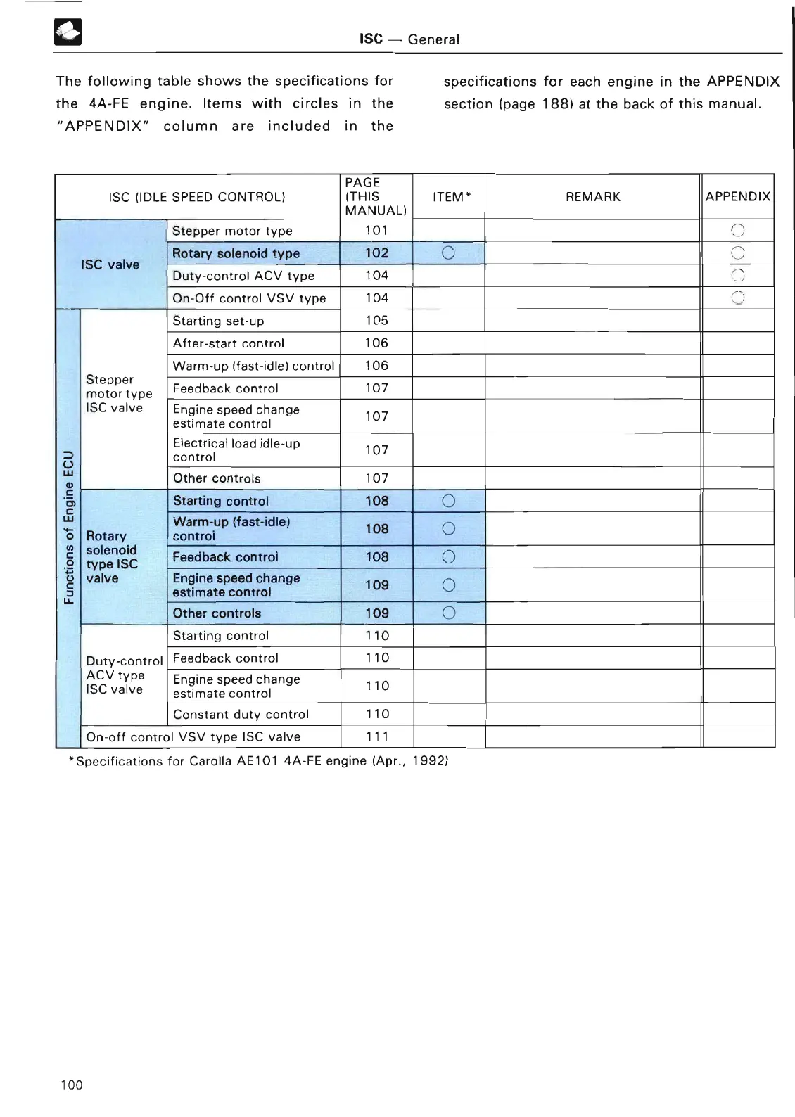 *Specifications for Carolla AE101 4A-FE engine (Apr