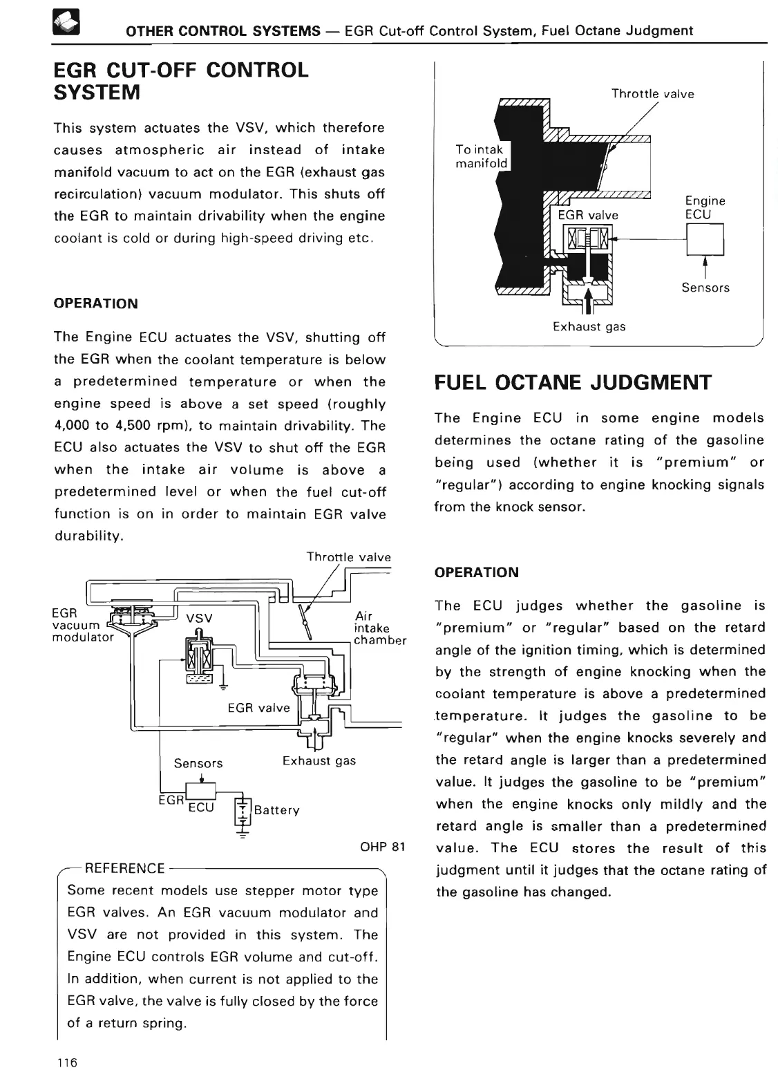 - EGR Cut-off Control System, Fuel Octane Judgmen