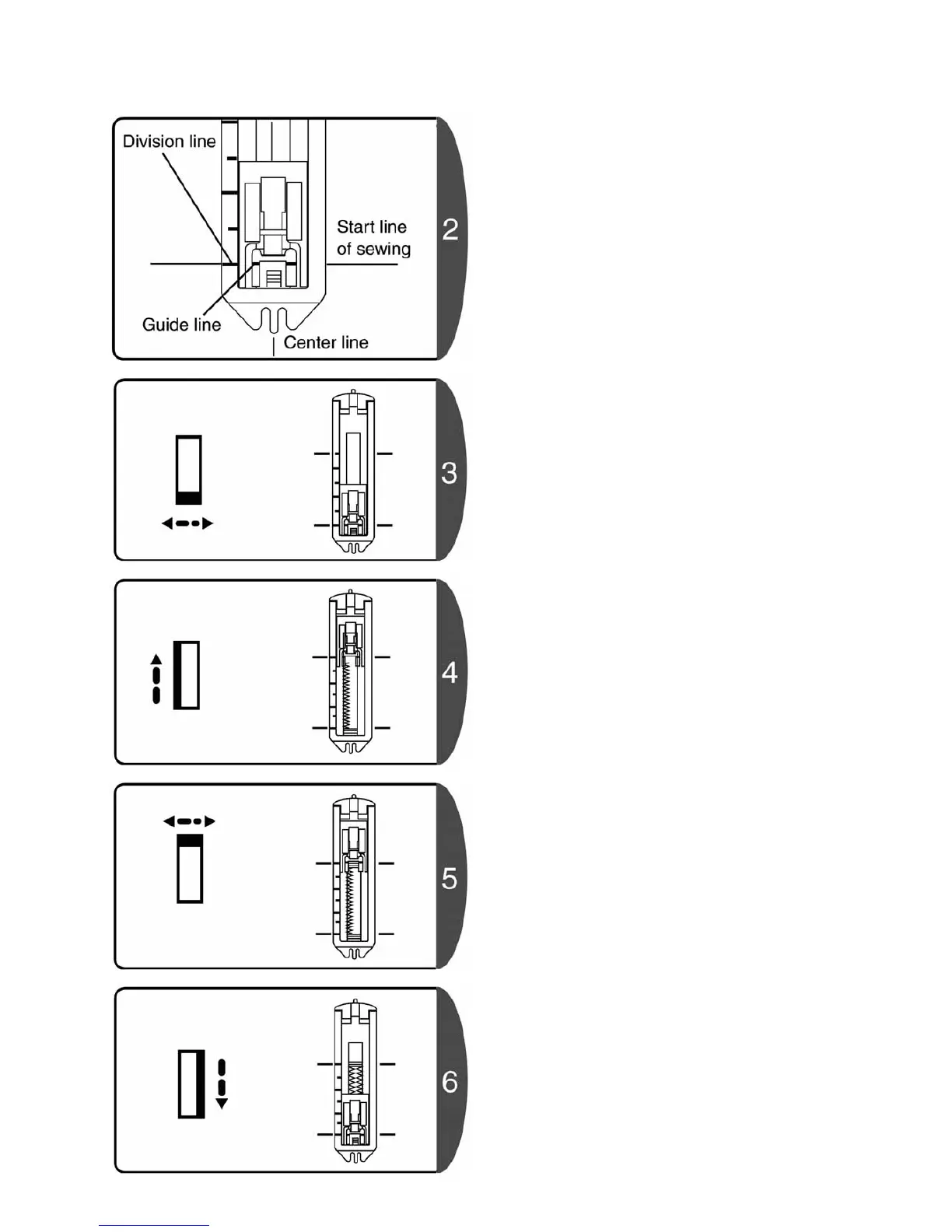 you with the guide line, and lower the presser foot