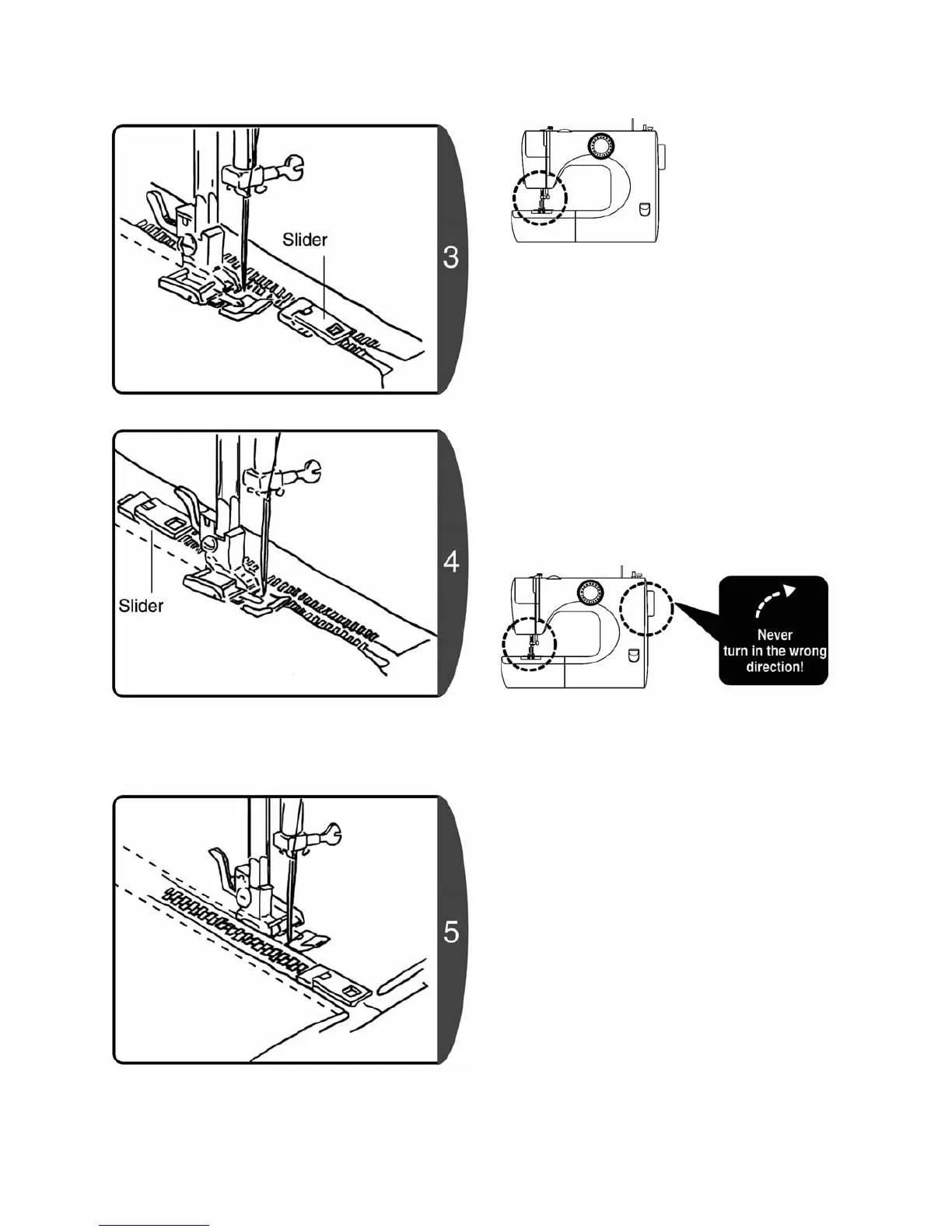 contact with the slider, and then stop the sewing