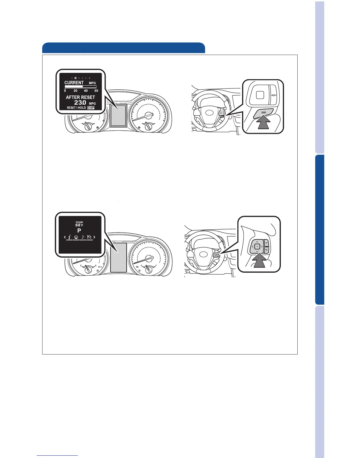 Push “DISP” to change information in the following: